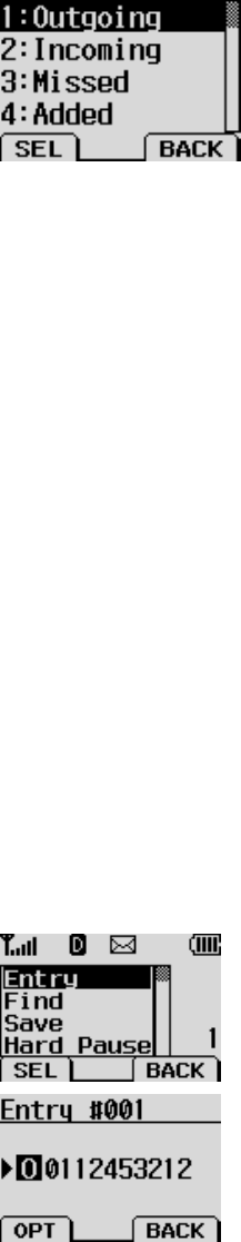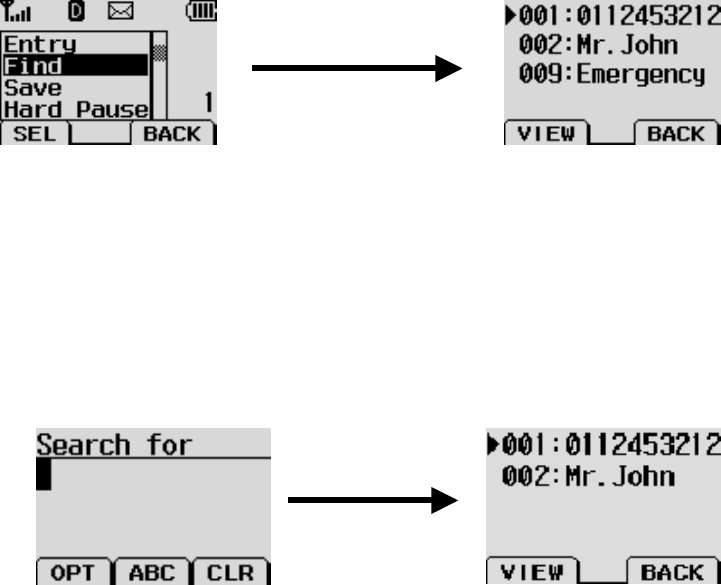 4. Search the Phone Book Entry number or name requested in the Phone Book