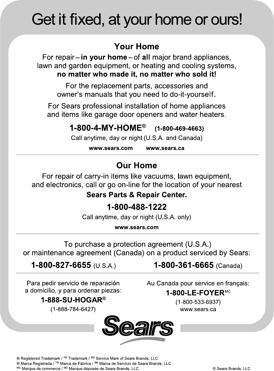 If none of these items are causing your problem, call Sears Service at 1-800-4-MY-HOME®.