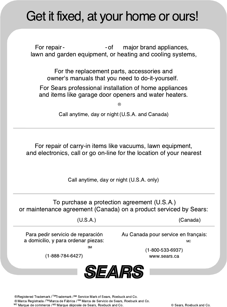 3828W5A2893 Sears, Roebuck and Co., Hoffman Estates, IL 60179 www.sears.com