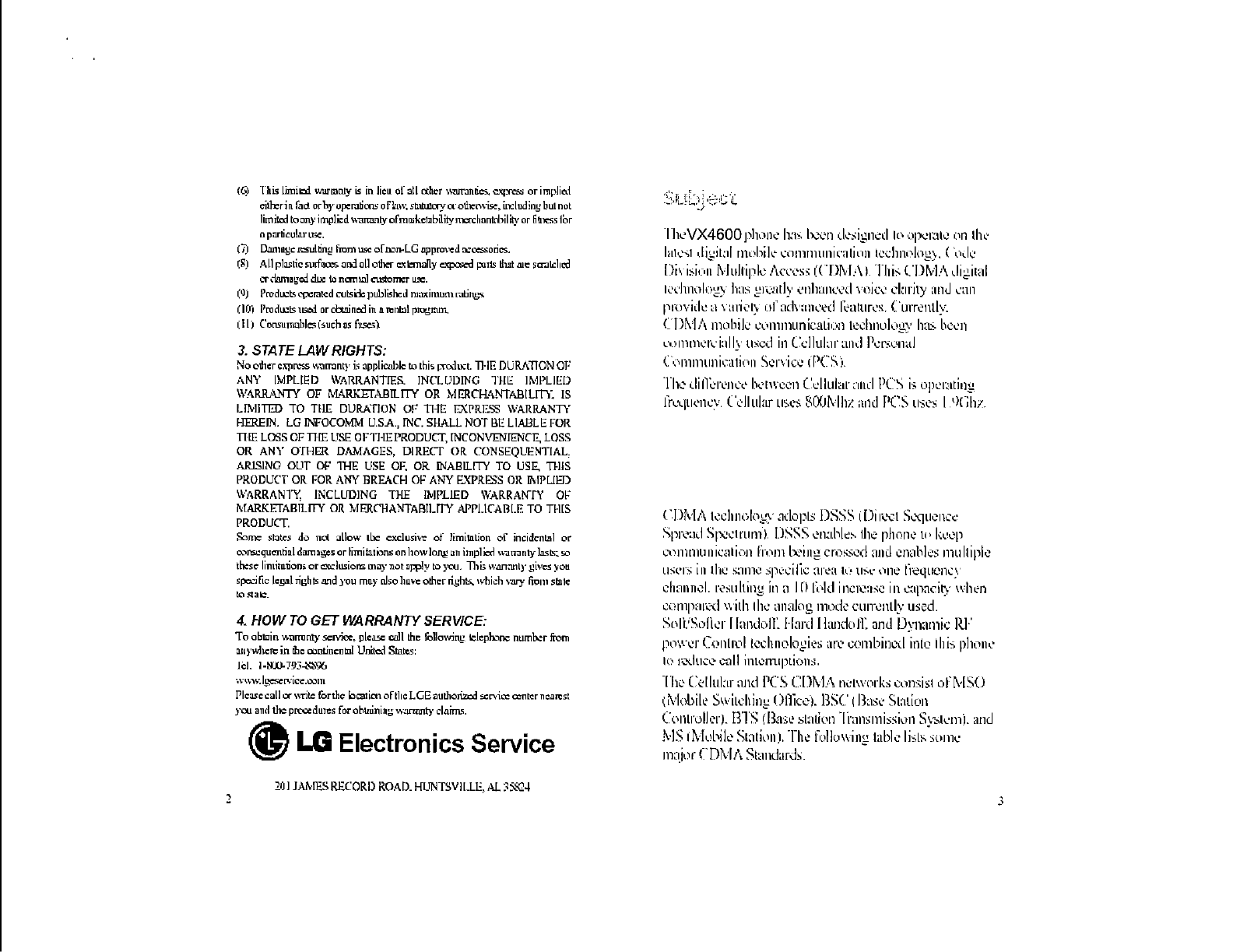 LG Electronics USA VX4600 Dual-Band CDMA Phone User Manual