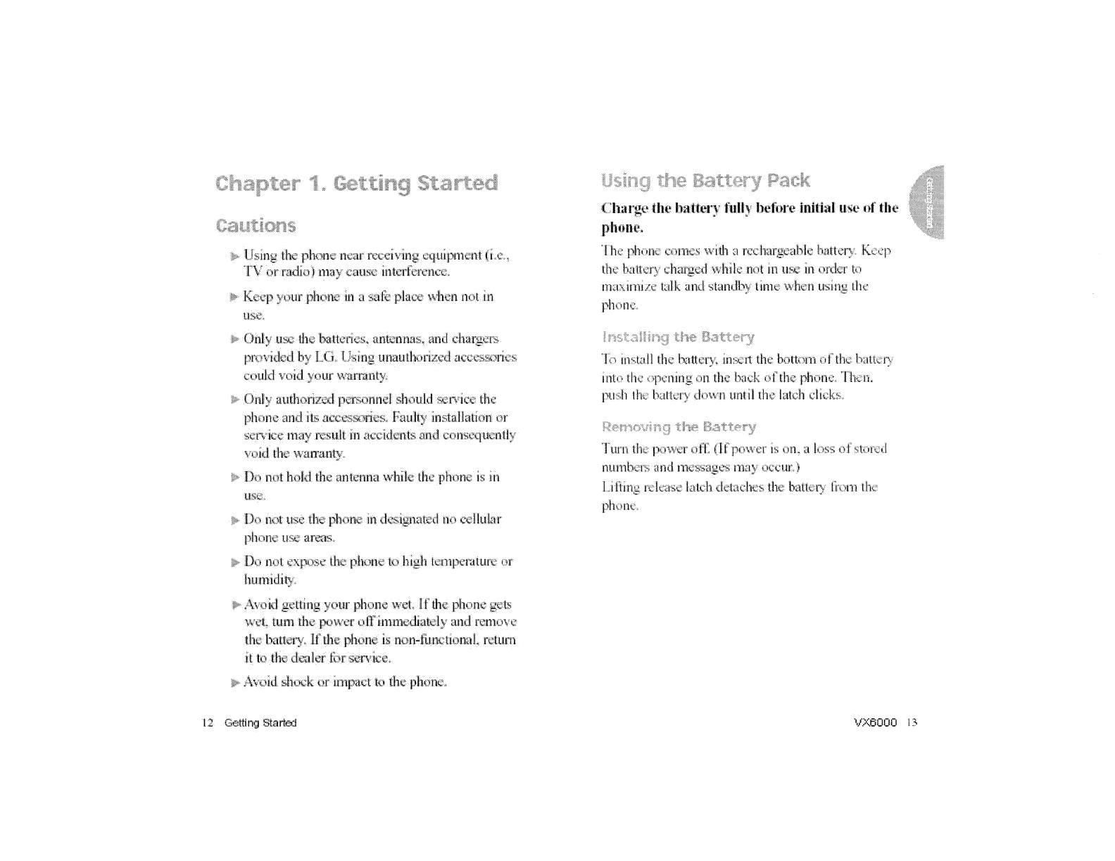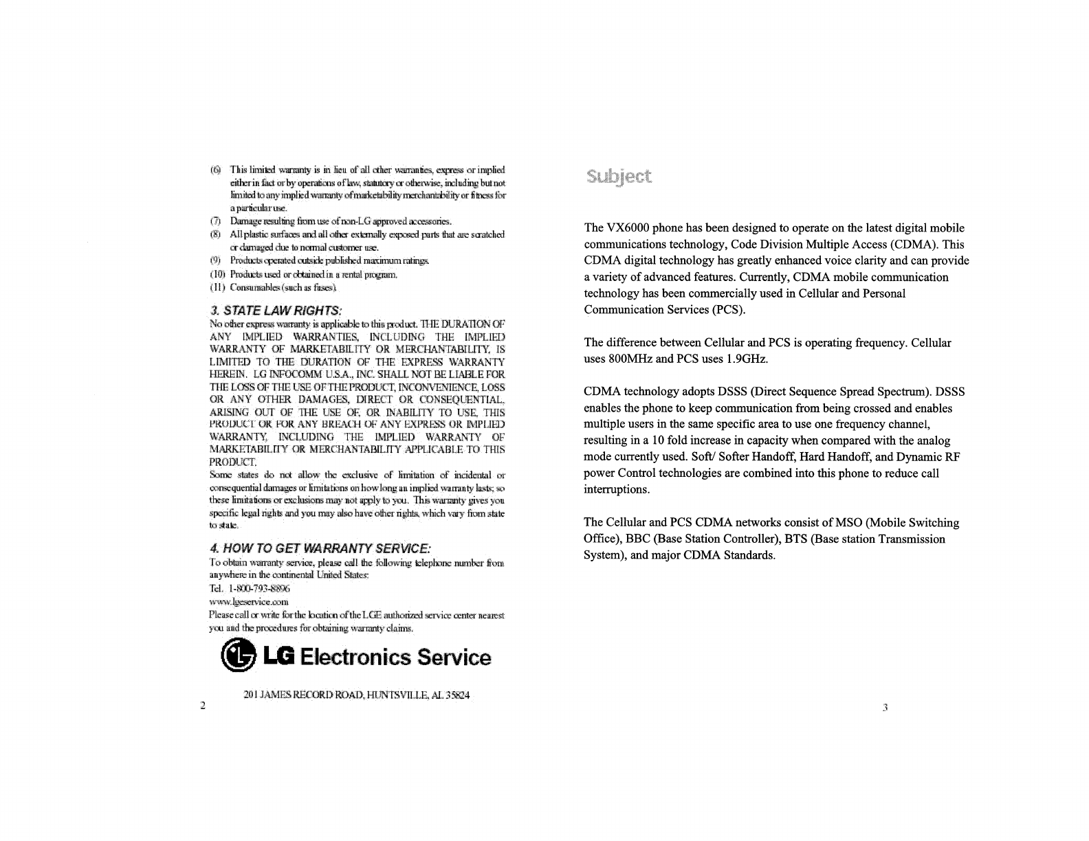 LG Electronics USA VX6000 Dual-Band CDMA Phone (GPS) User Manual 1
