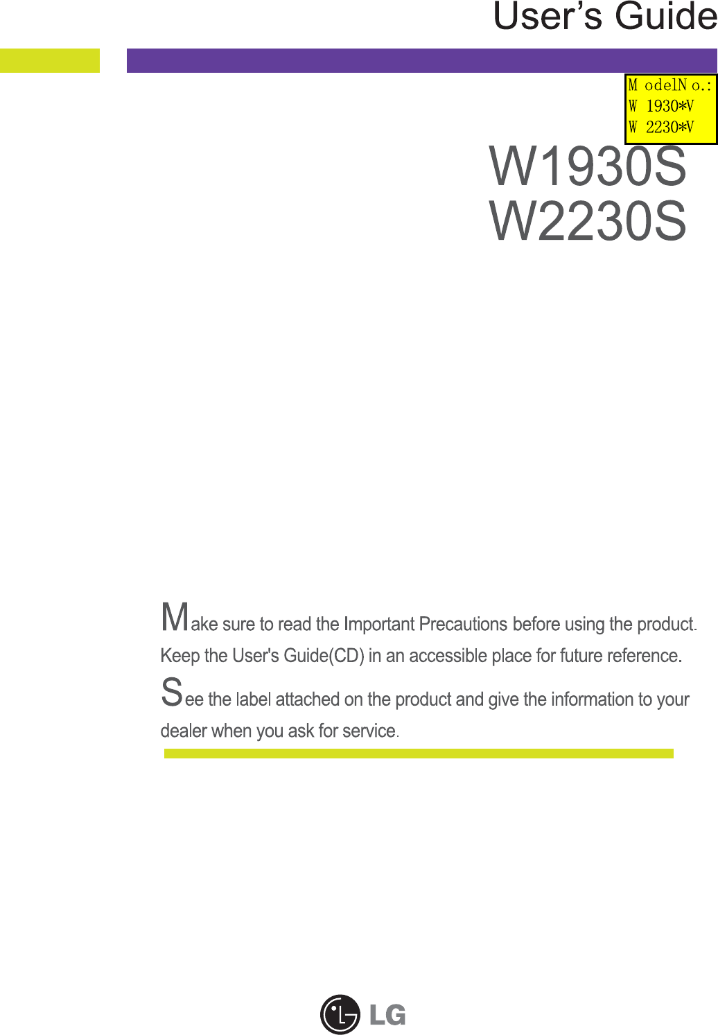 LG Electronics USA W2230SV LCD MONITOR User Manual