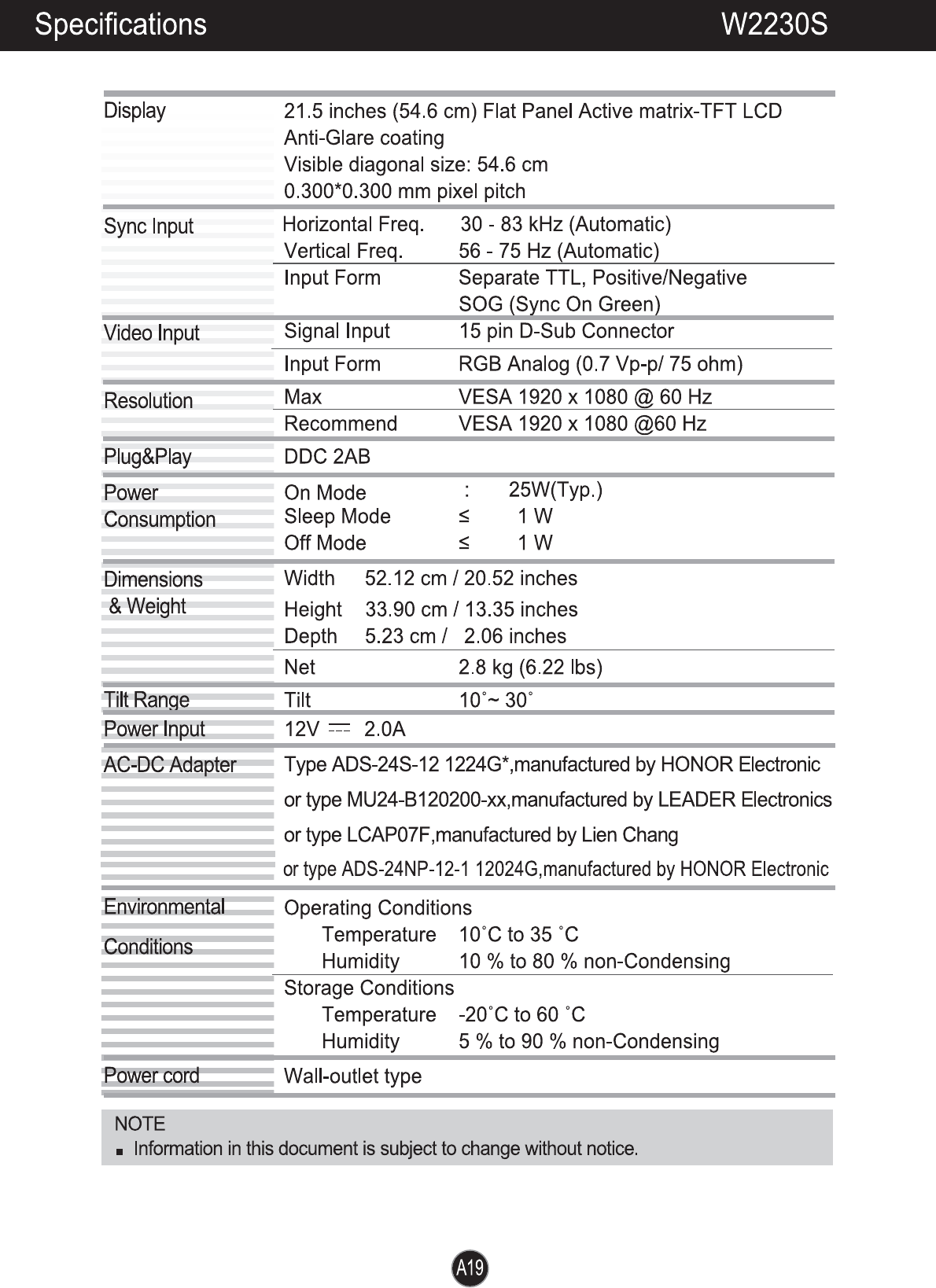 W2230SV User Manual HTML Version