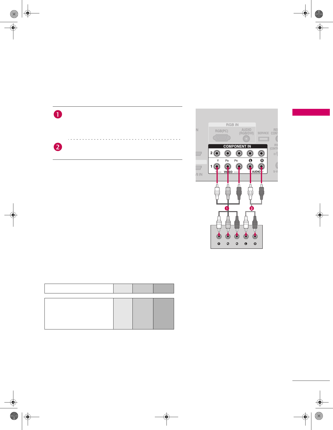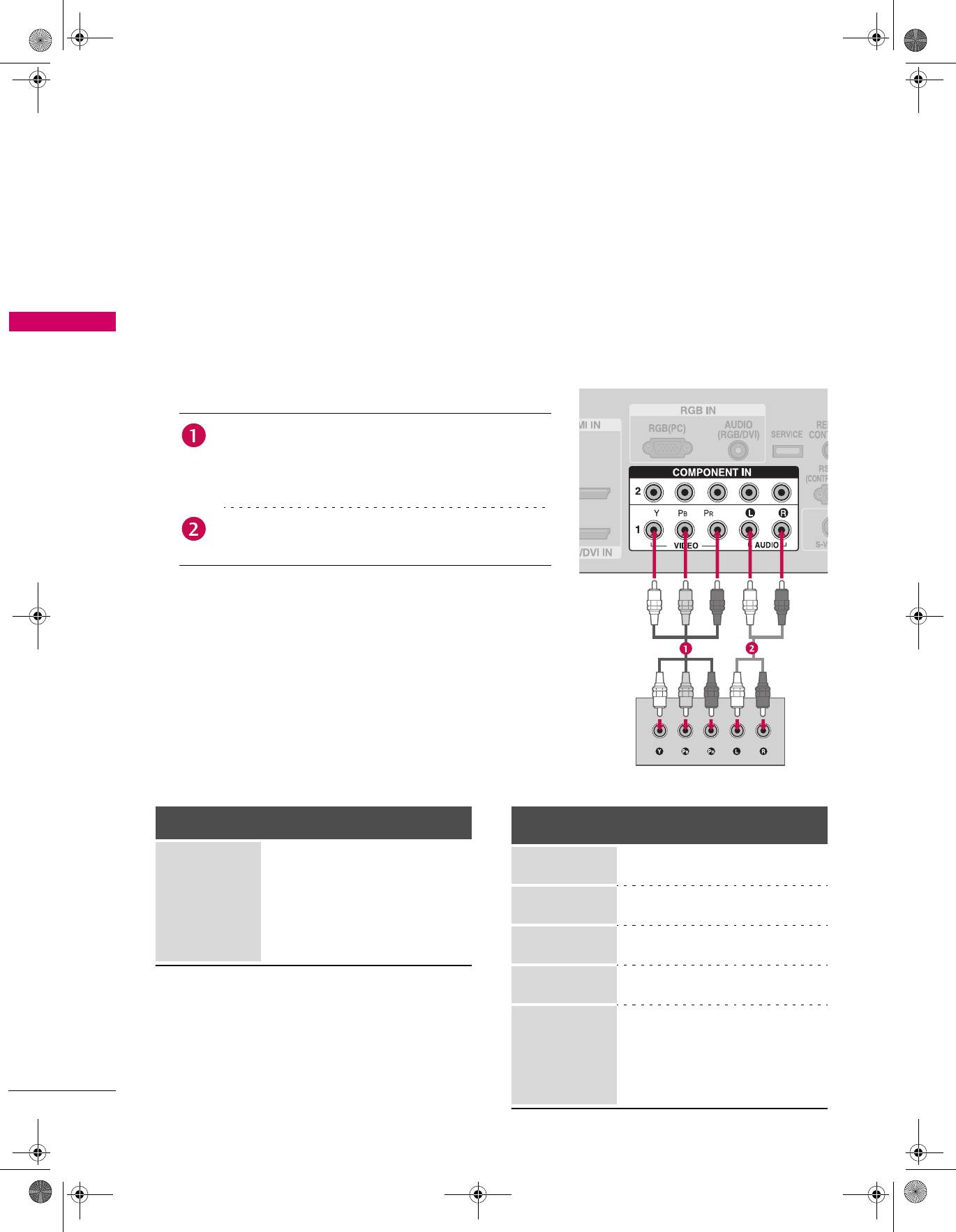 Component 1-2: Select them to watch DVD or a Digital set-top box.