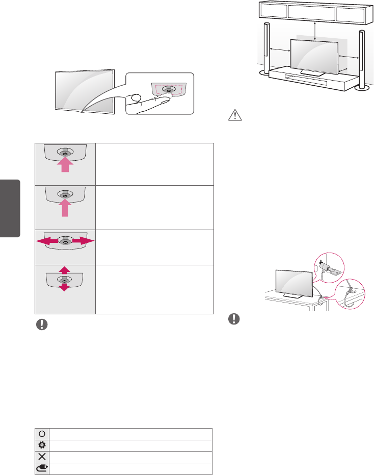 • ALWAYS install the television where it cannot be pushed, pulled over or knocked down.