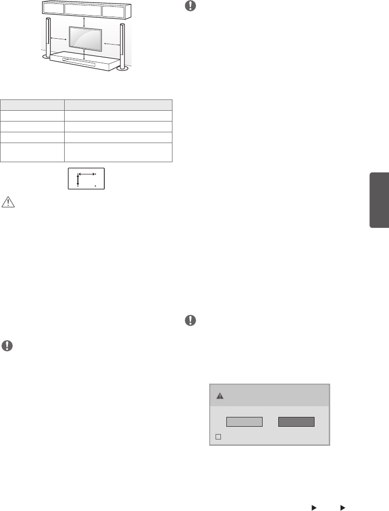 • ALWAYS make sure that the wall or ceiling where you are mounting the television is appropriate.