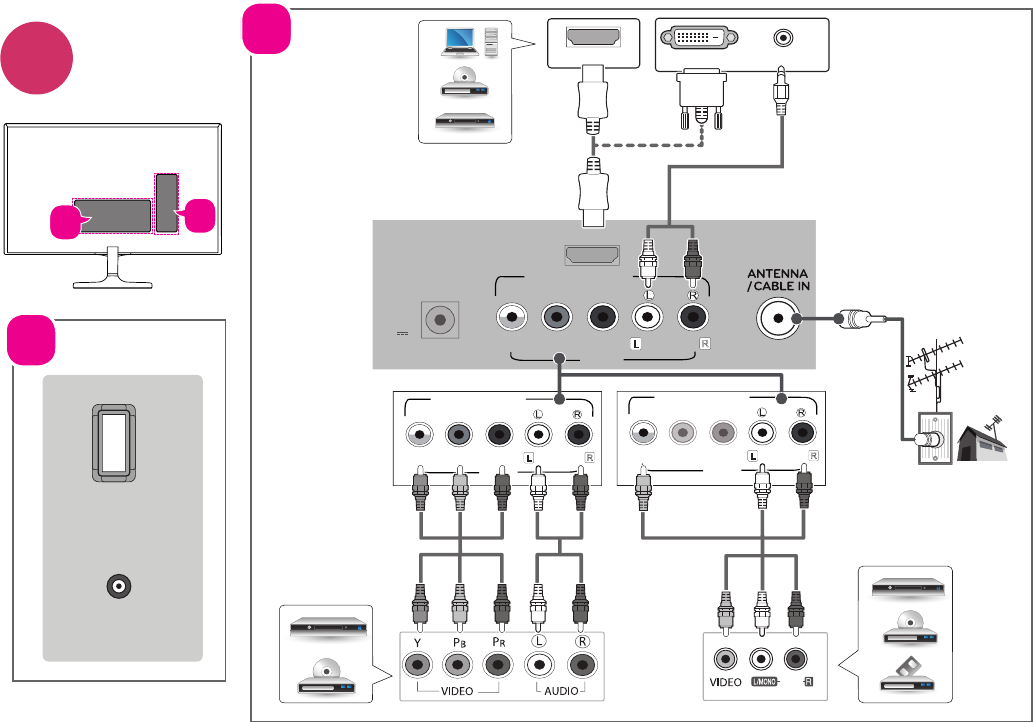 • Televisions can be heavy. A minimum of two people is required for a wall or ceiling mount