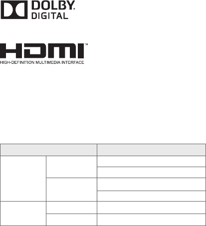 Manufactured under license from Dolby Laboratories. Dolby and the double-D symbol are trademarks of Dolby Laboratories.