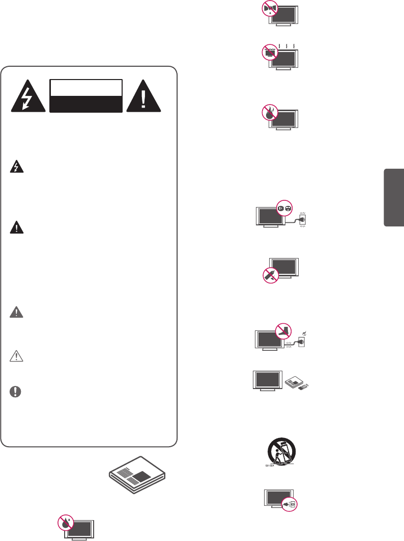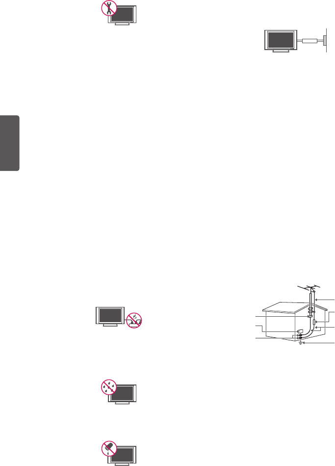 • NEVER allow children to climb on or play on the television or the furniture on which the television