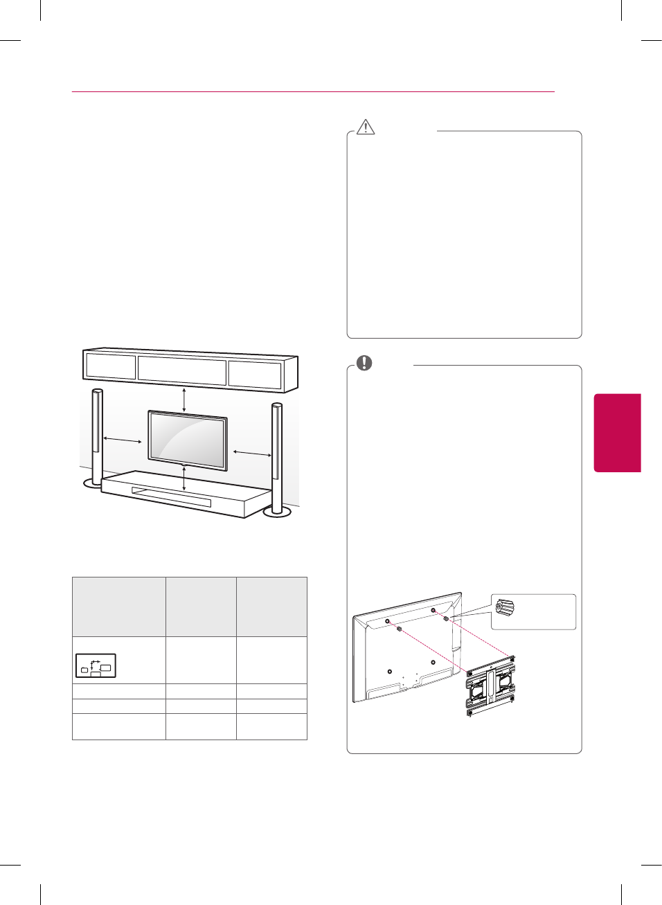 • ALWAYS make sure that the wall or ceiling where you are mounting the television is appropriate.