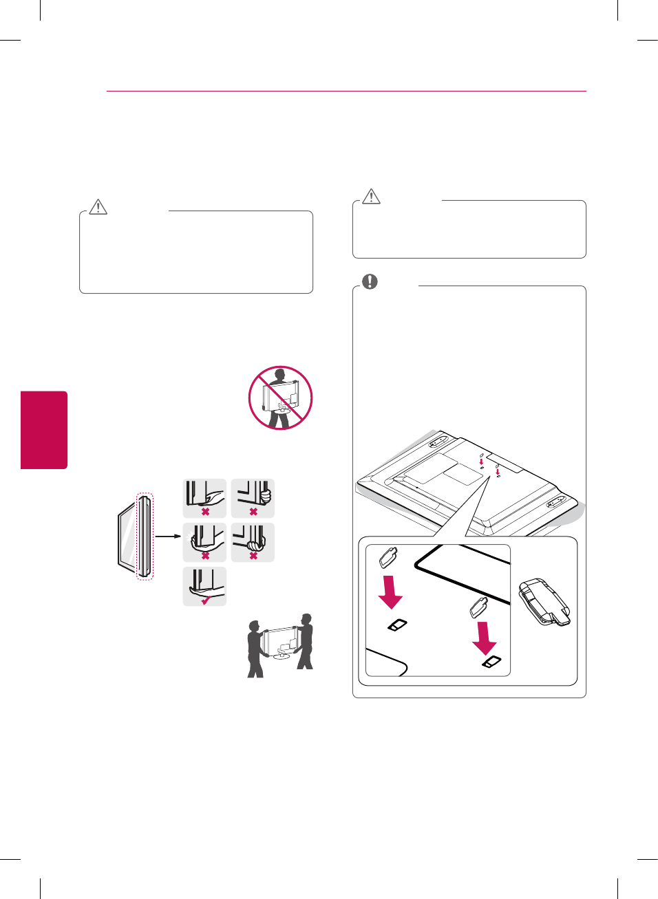 • Televisions can be heavy. A minimum of two people is required for a wall or ceiling mount