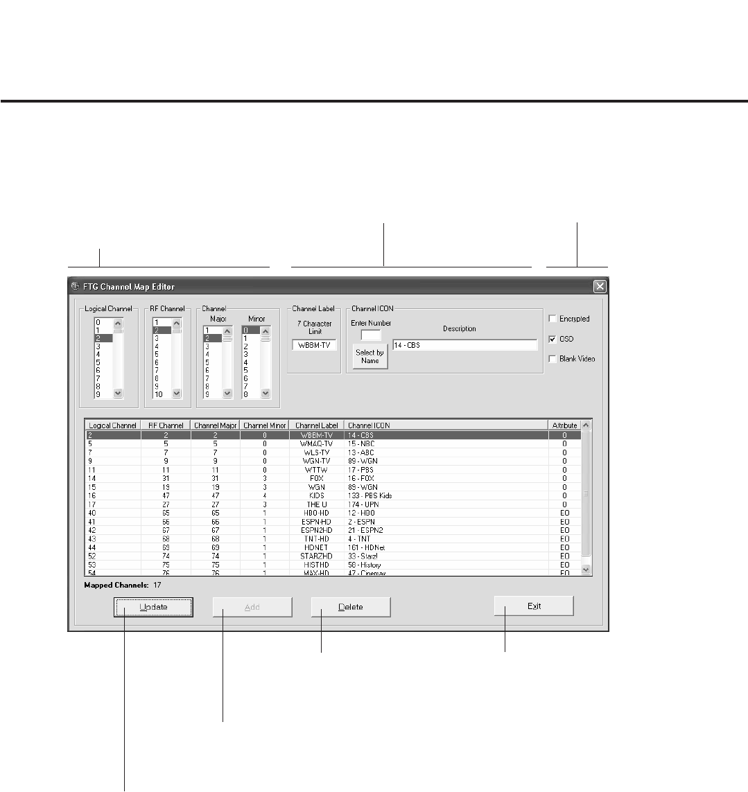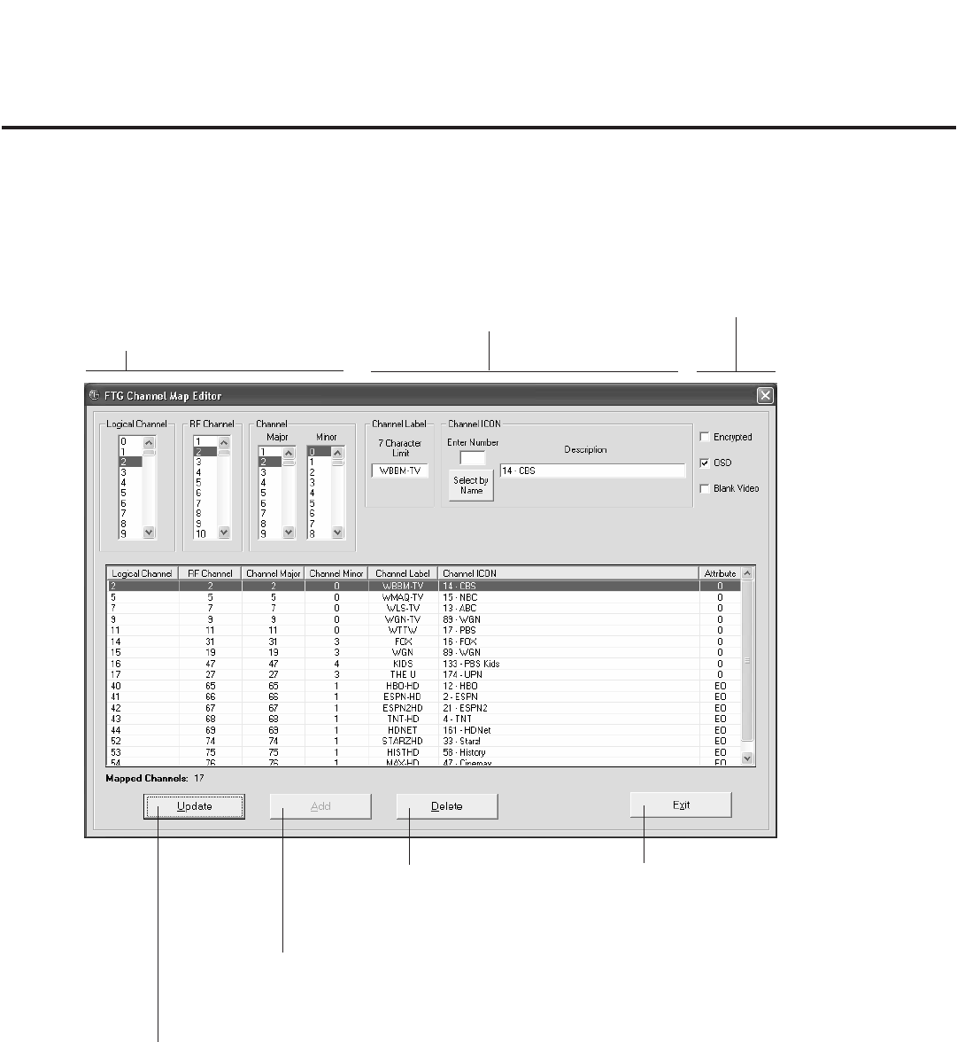 un “Canales asignados” mapa de canales FTG a la TV. Consulte “Crear el archivo de Conguración