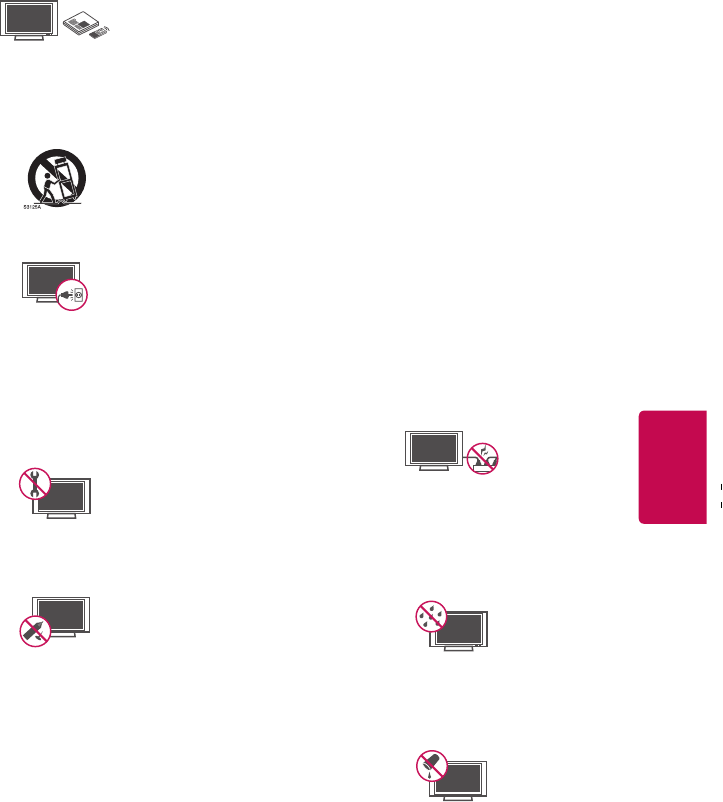 • NEVER allow children to climb on or play on the television or the furniture on which the television