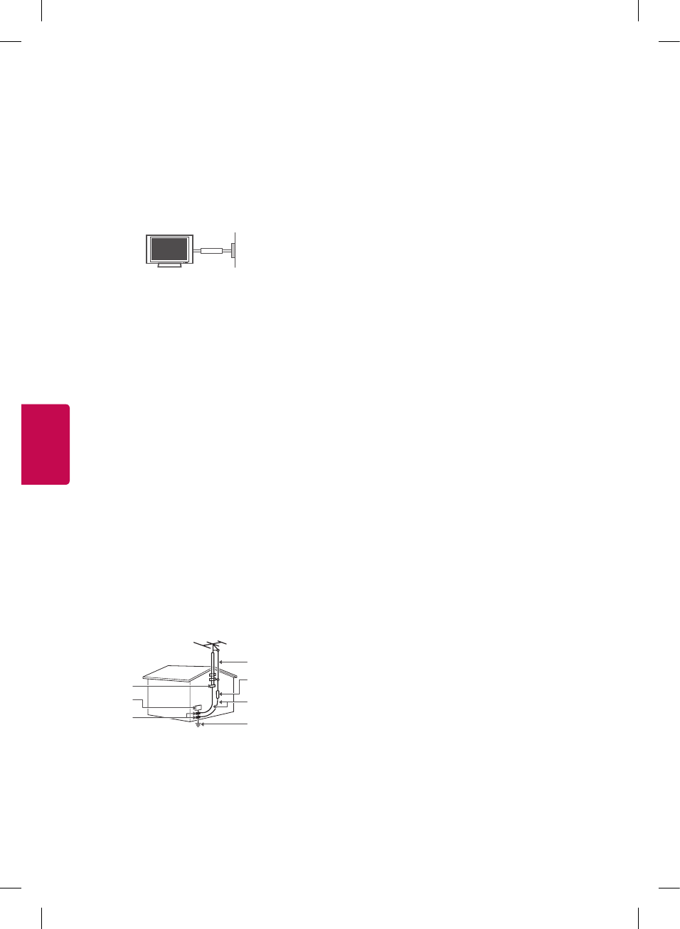 • ALWAYS install the television where it cannot be pushed, pulled over or knocked down.