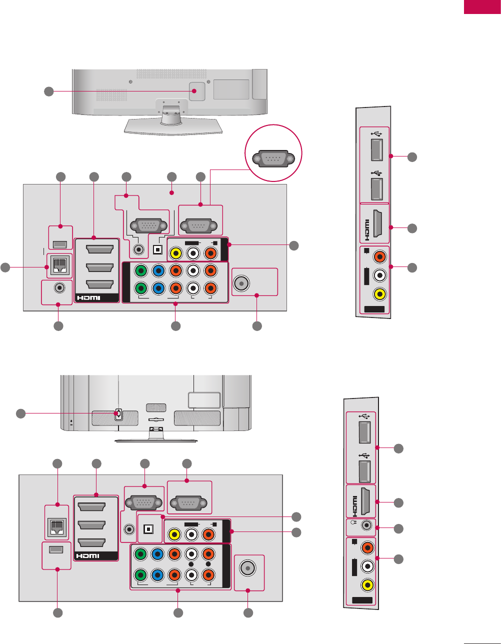 on the back and/or one side of the TV.