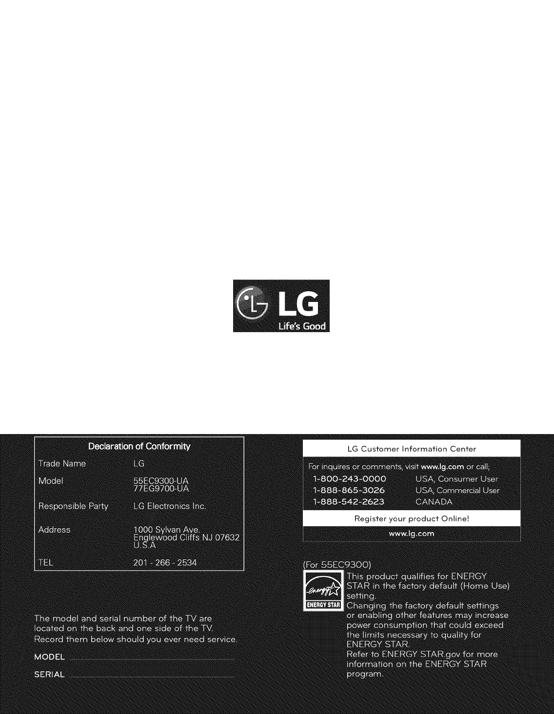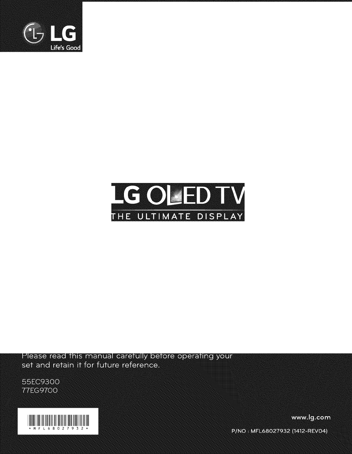 User Manual: LG 55EC9300 55EC9300 LG LED TV - Manuals and Guides View the owners manual for your LG LED TV #55EC9300. Home:Electronics Parts:LG Parts:LG LED TV Manual