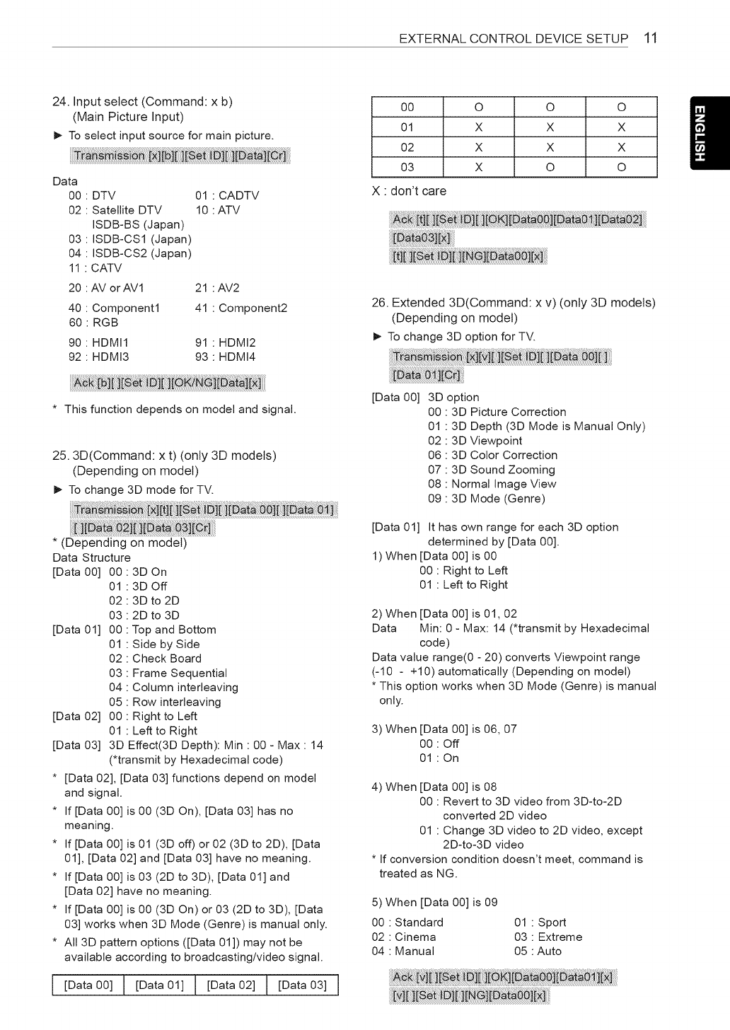 * If [Data 00] is 00 (3D On) or 03 (2D to 3D), [Data