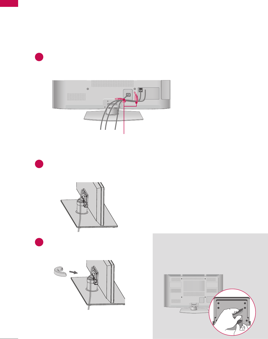 - SECURING THE TV TO THE WALL TO PREVENT FALLING WHEN THE TV IS USED ON A STAND