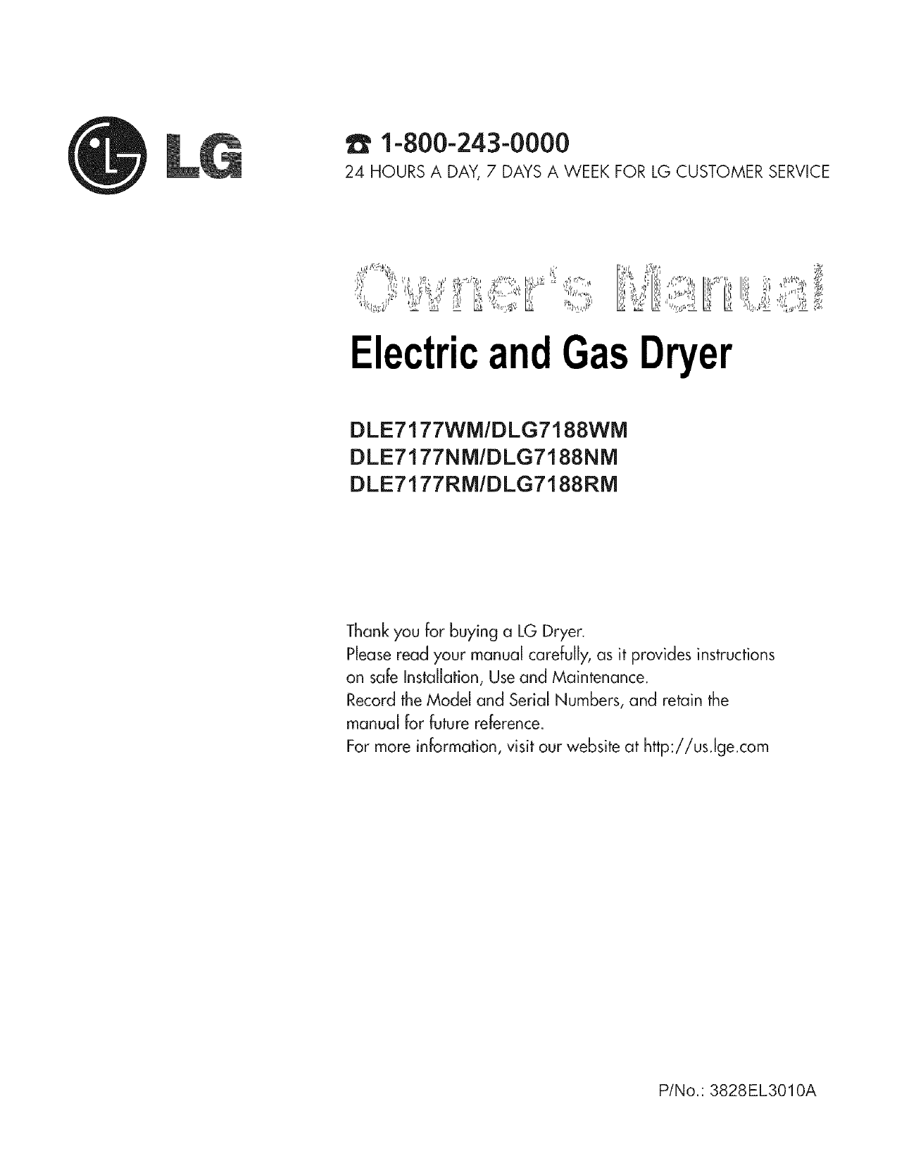 User Manual: LG DLE7177RM DLE7177RM LG DRYER - Manuals and Guides View the owners manual for your LG DRYER #DLE7177RM. Home:Laundry & Garment Care Parts:LG Parts:LG DRYER Manual