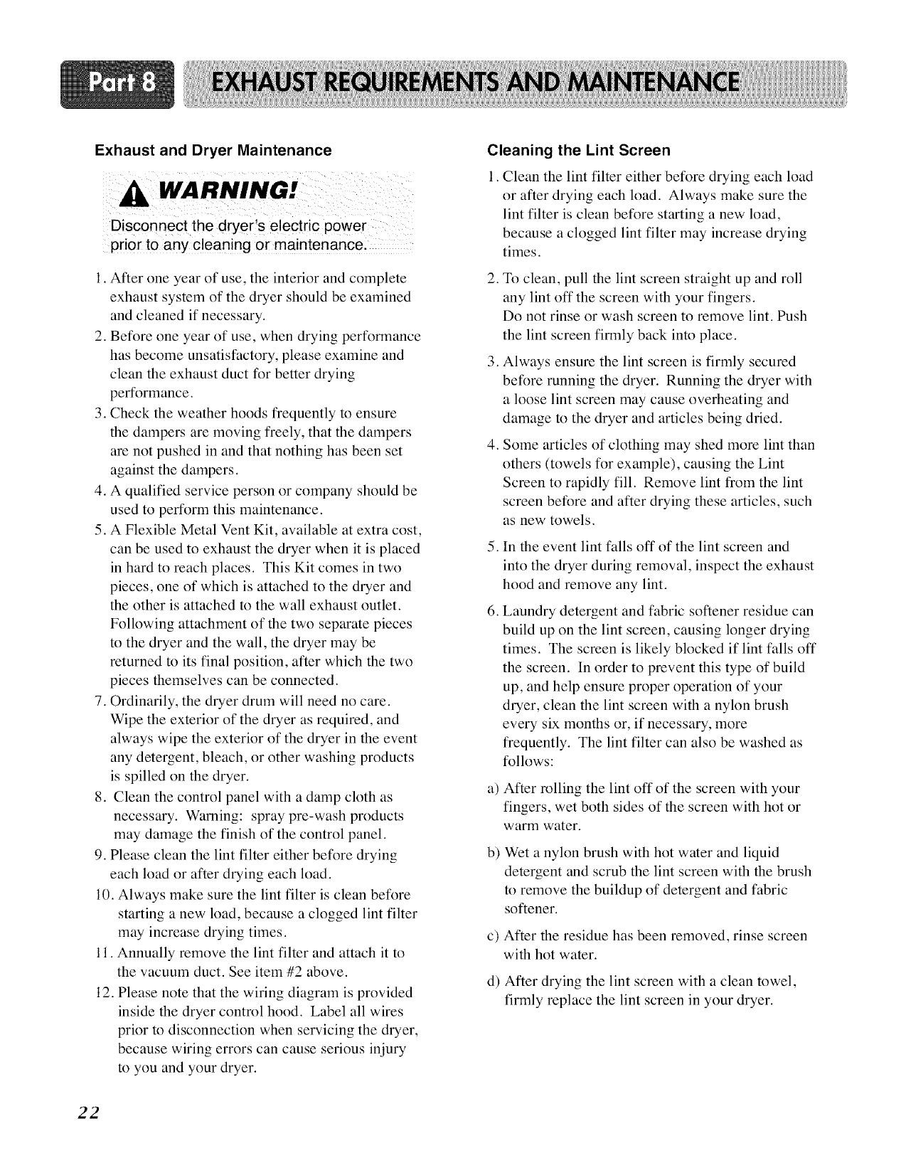 of the clothes find the condition of the exhaust ducts find lint filer.