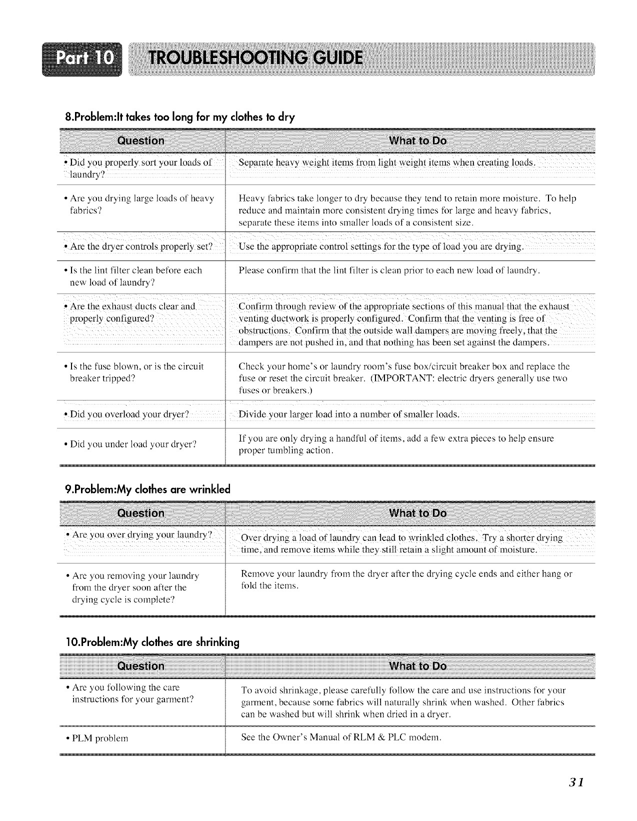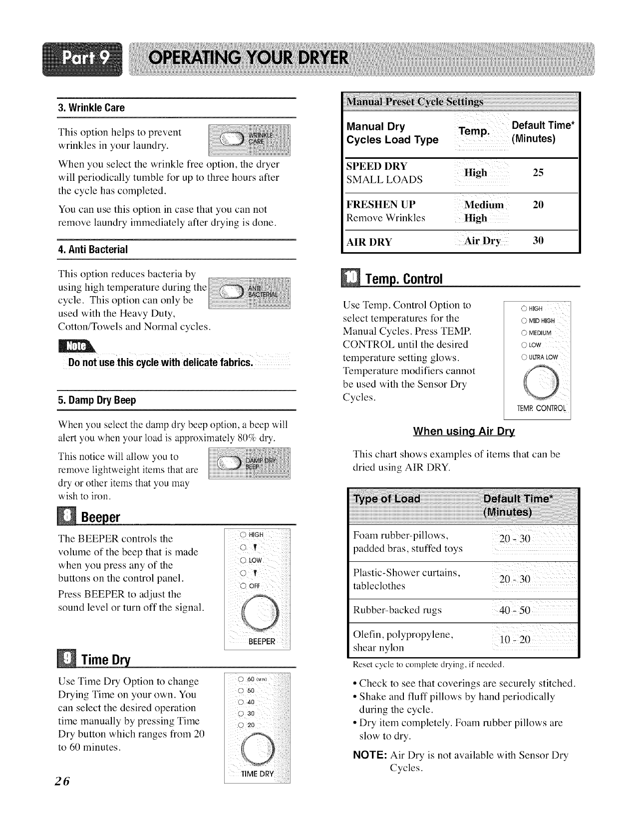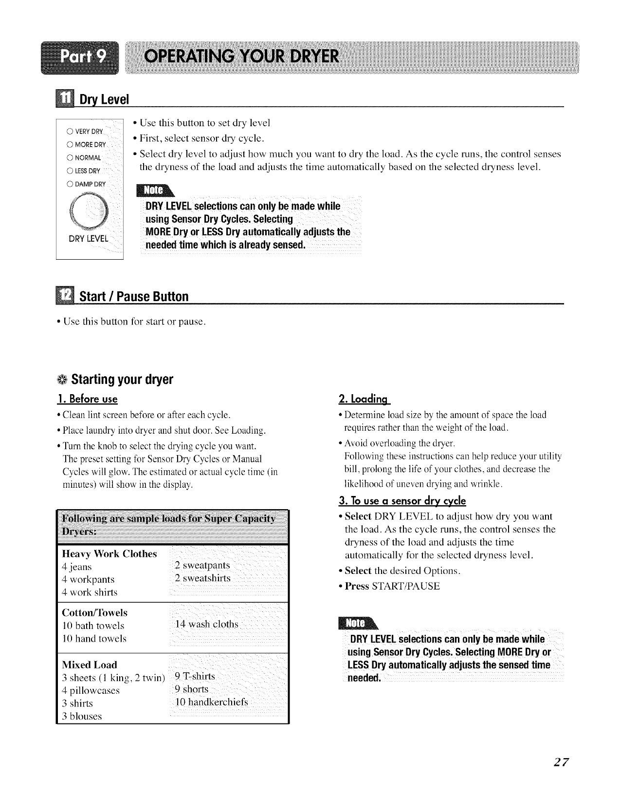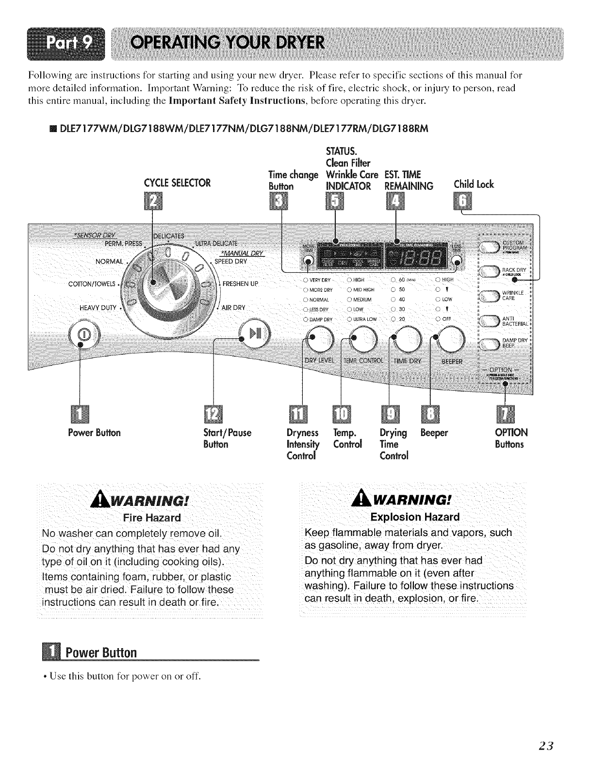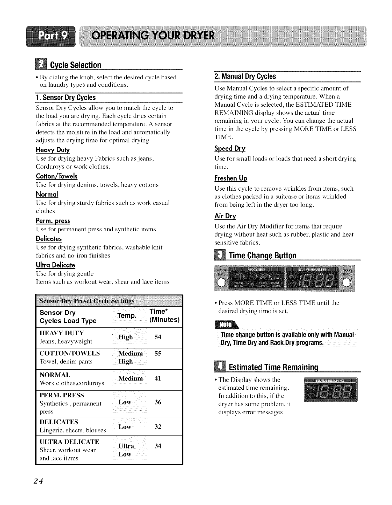 PART9. OPERATING YOUR DRYER ............................................................................................................................................................................................ 23-30