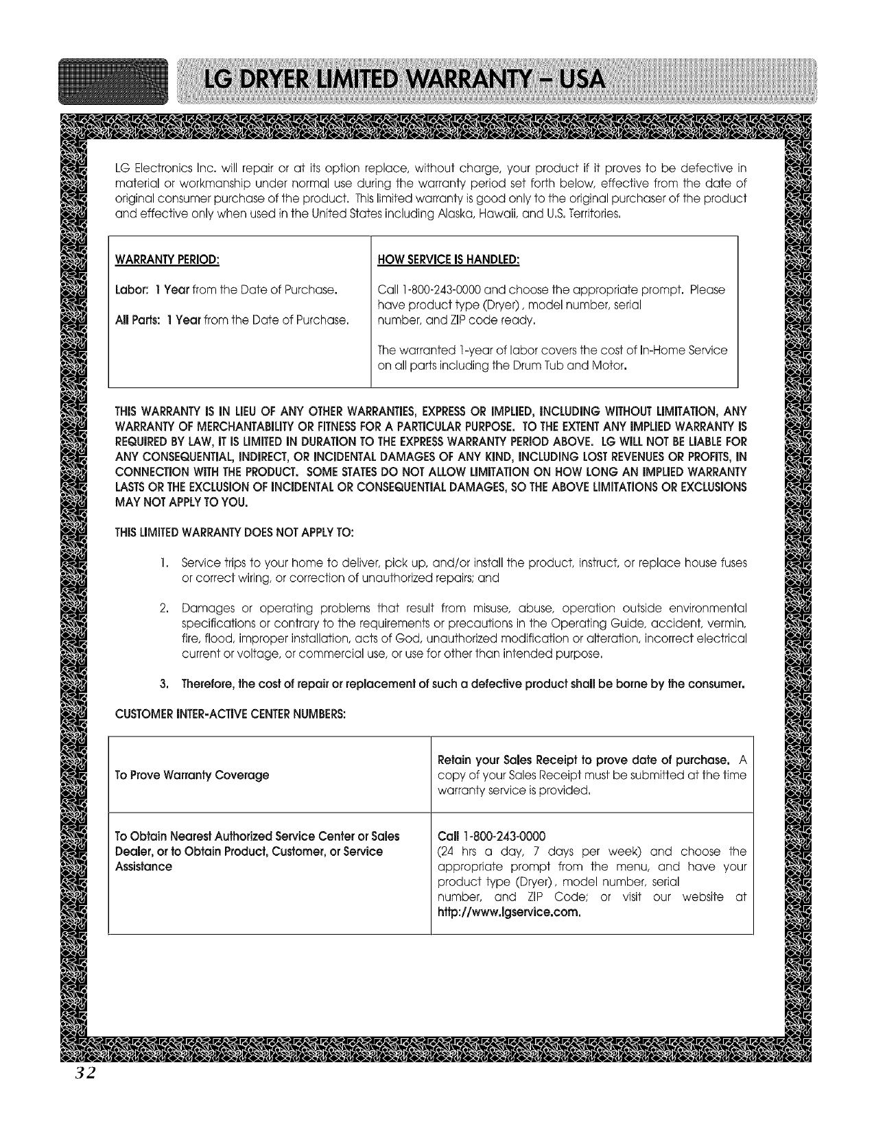 LG DRYER LIMITED WARRANTY ...................................................................................................................................................................................................... 34