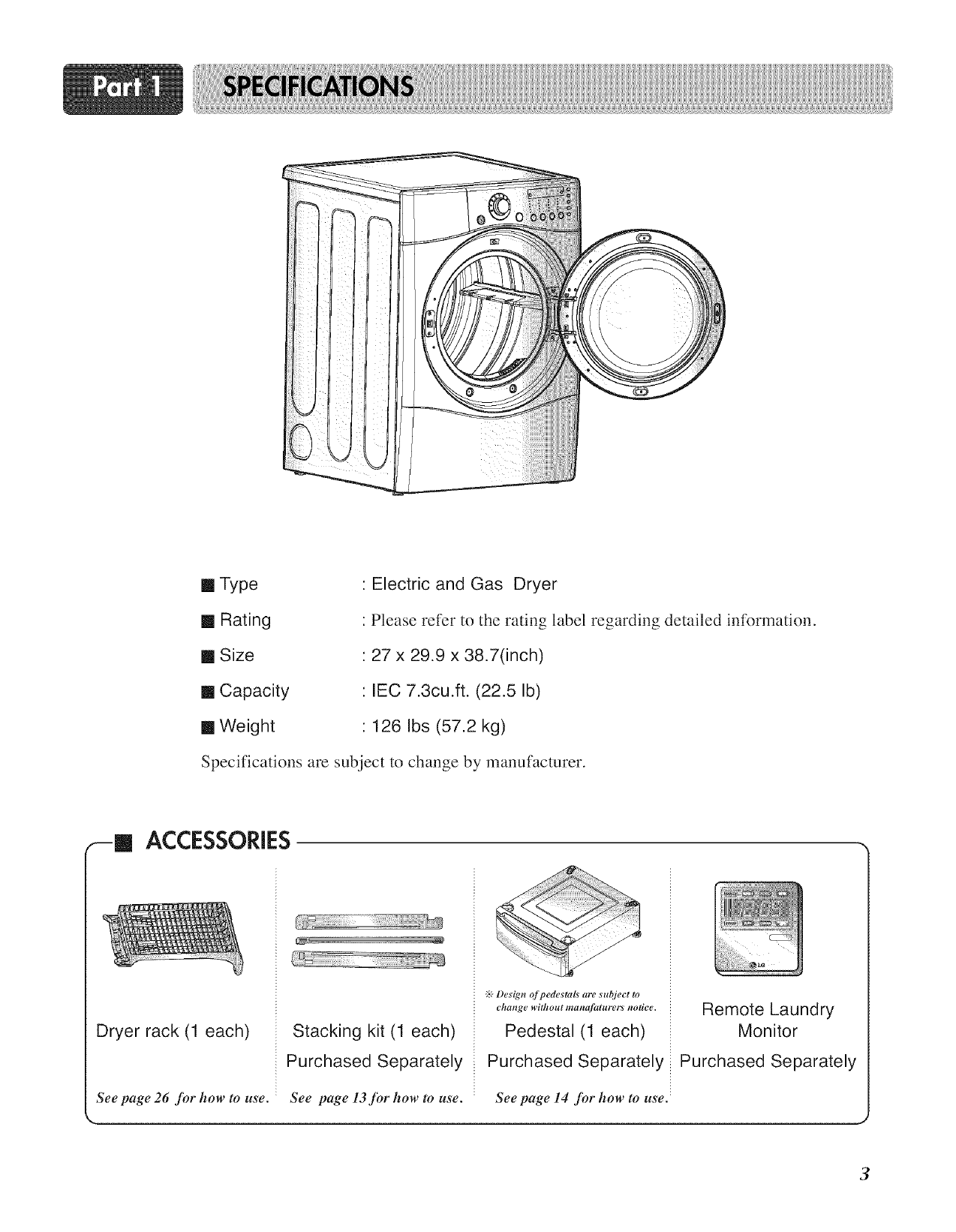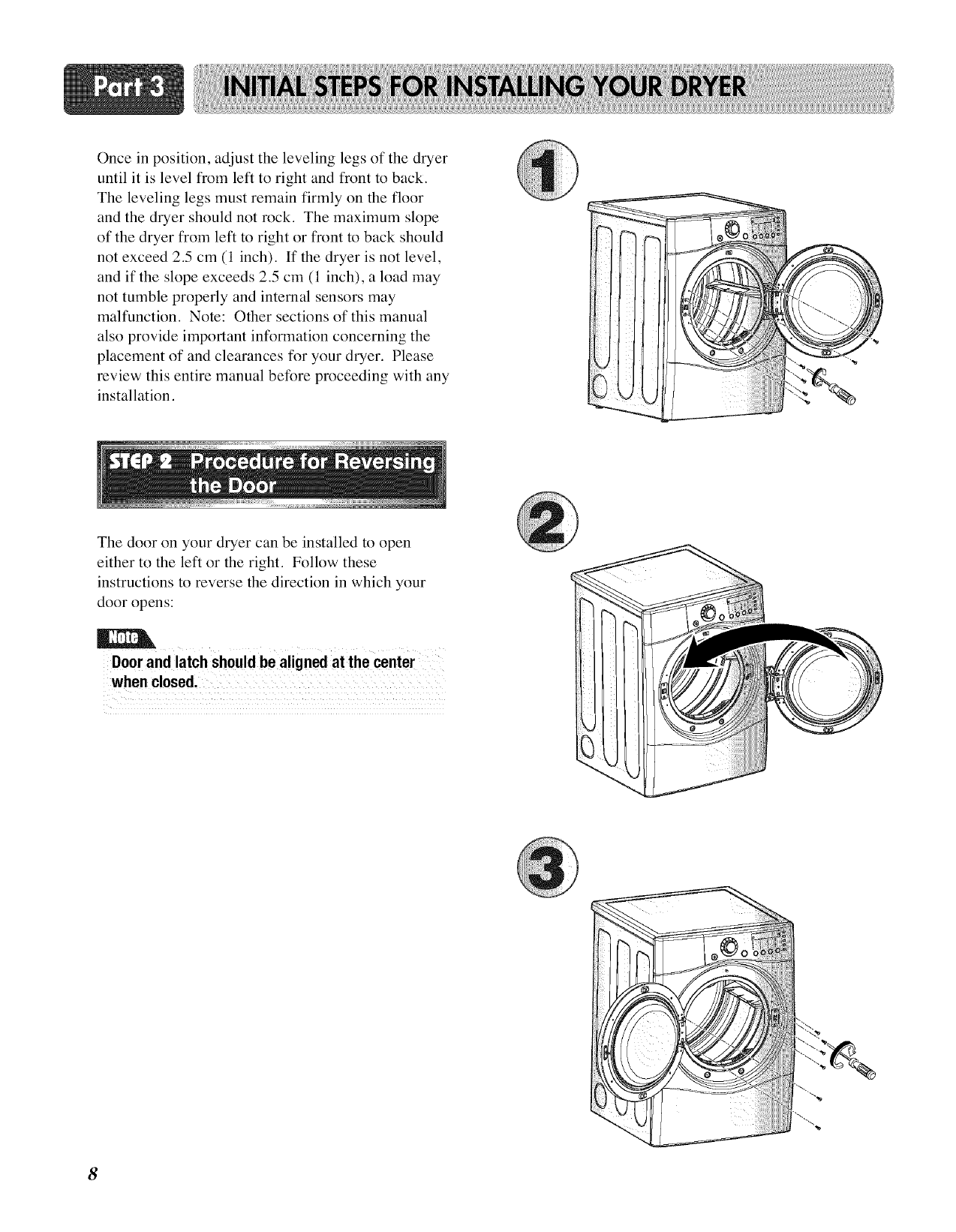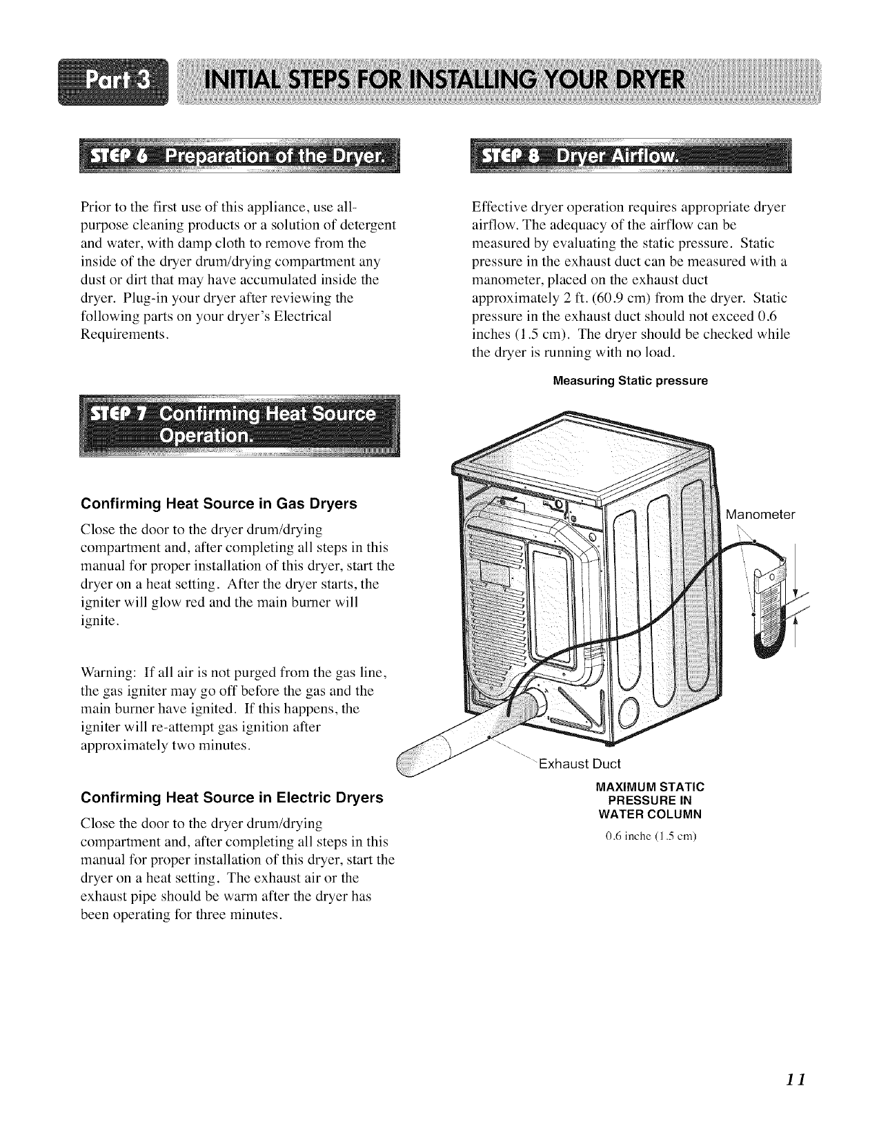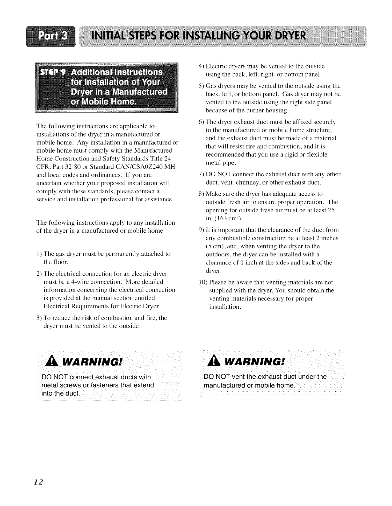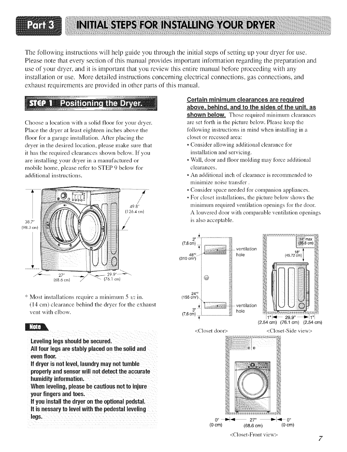 PART3. INITIAL STEPS FOR INSTALLING YOUR DRYER .......................................................................................................................................................... 7-12