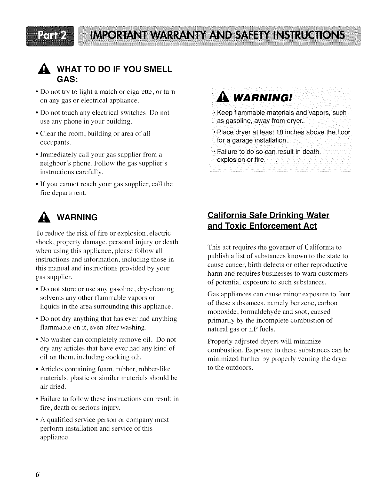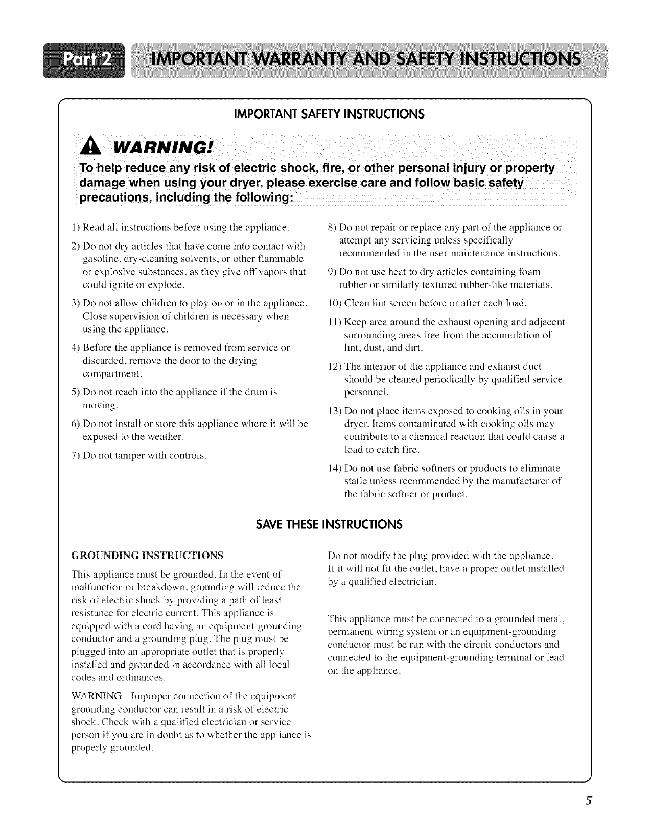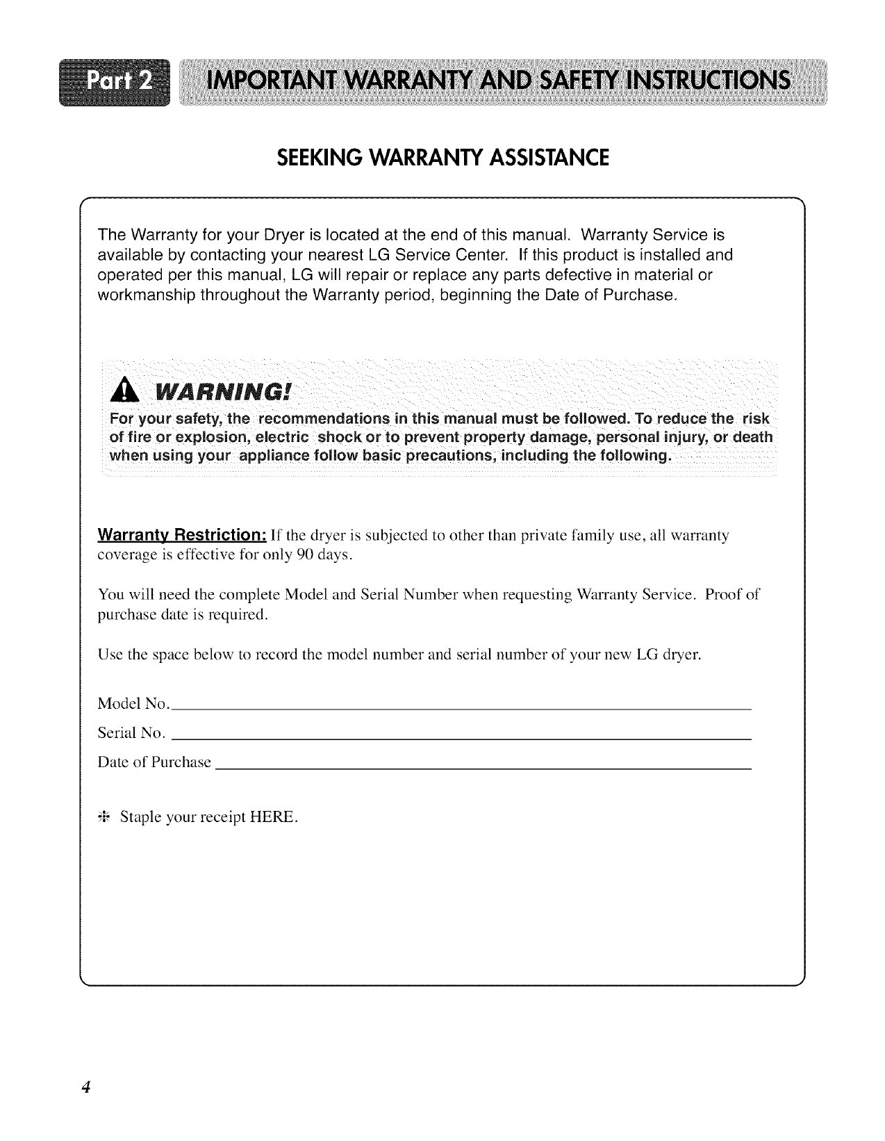 PART2. IMPORTANT WARRANTY AND SAFETY INSTRUCTIONS .............................................................................................................................................. 4-6