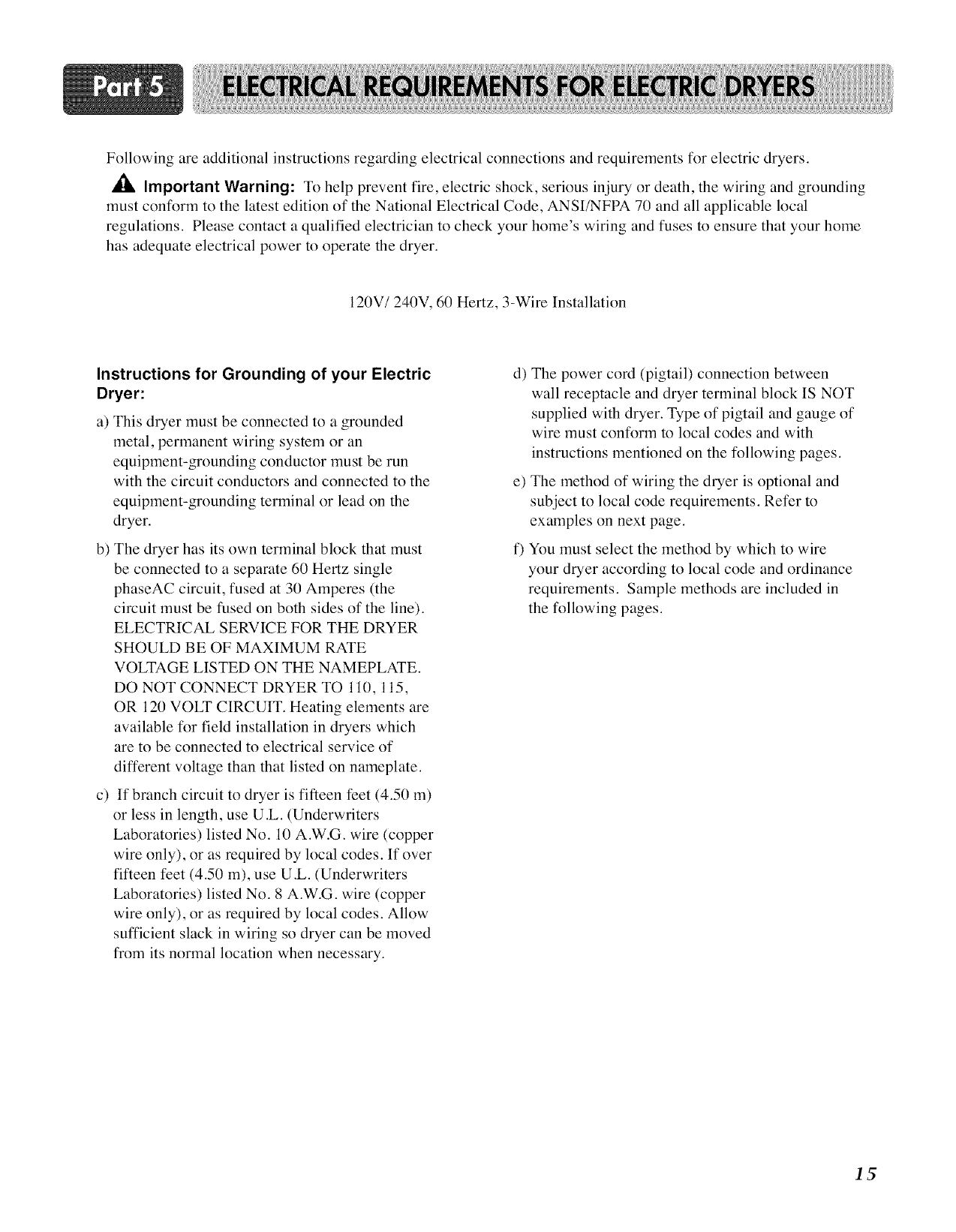 PART5. ELECTRICAL REQUIREMENTS FOR ELECTRIC DRYER ............................................................................................................................................. 15-18