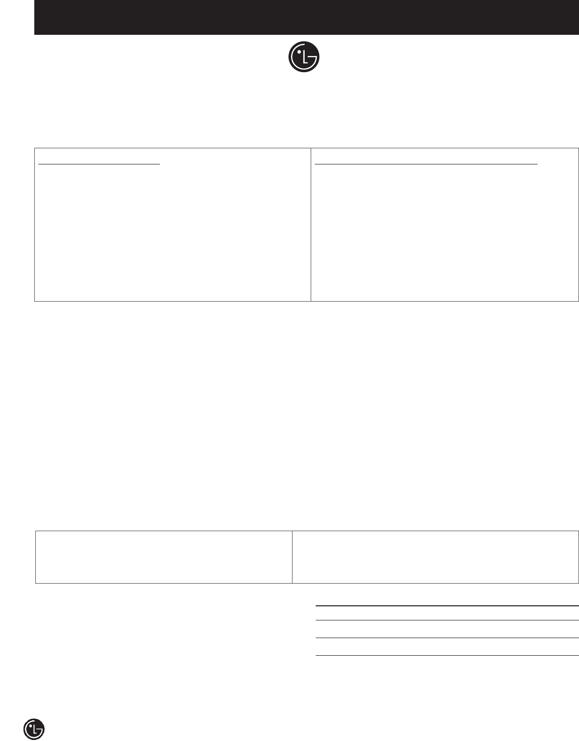 LA RESPONSABILITÉ DE LG CANADA SE LIMITE À LA GARANTIE CI-DESSUS. SAUF TEL QU'IL EST EXPLICITEMENT INDIQUÉ CI-DESSUS, LG CANADA NE