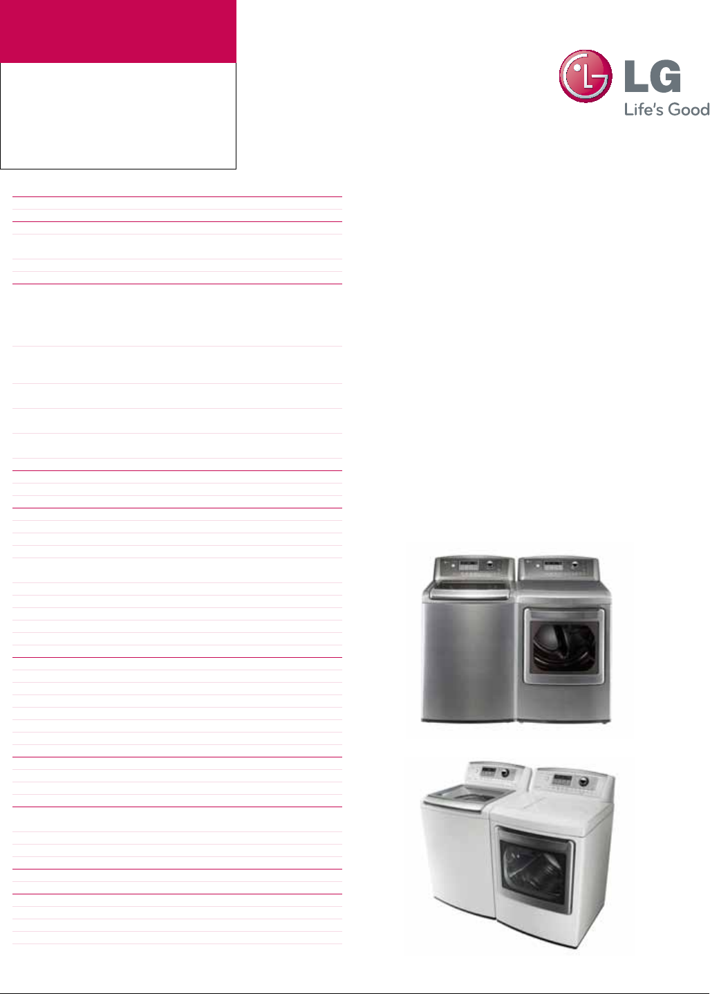 LG DLEX5101W User Manual Specification Dryer DLEX5101 DLGX5102 Spec Sheet