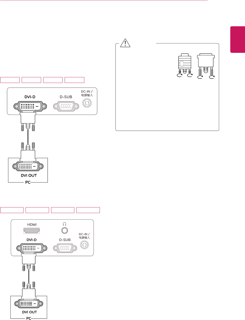 E2351VR / E2351VQ 15 pin D-SUB Connector / DVI-D Connector (Digital)