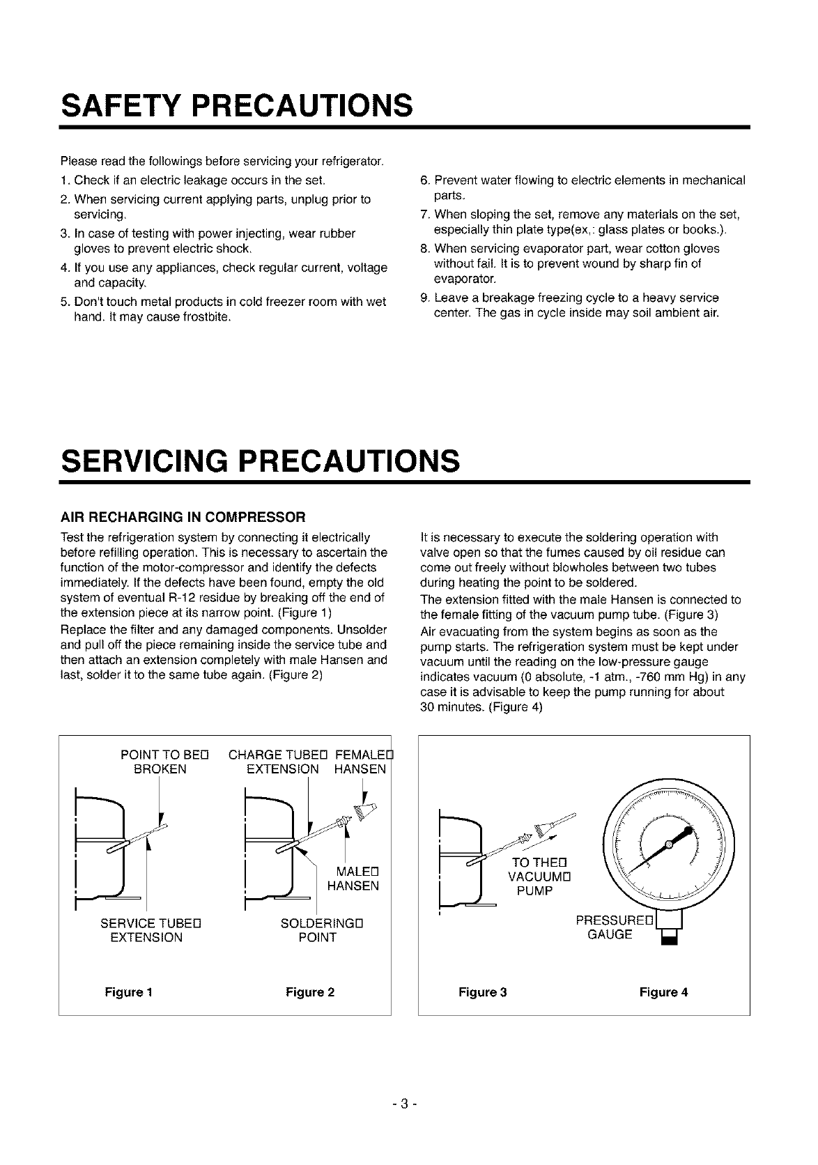 Please read the followings before servicing your refrigerator.