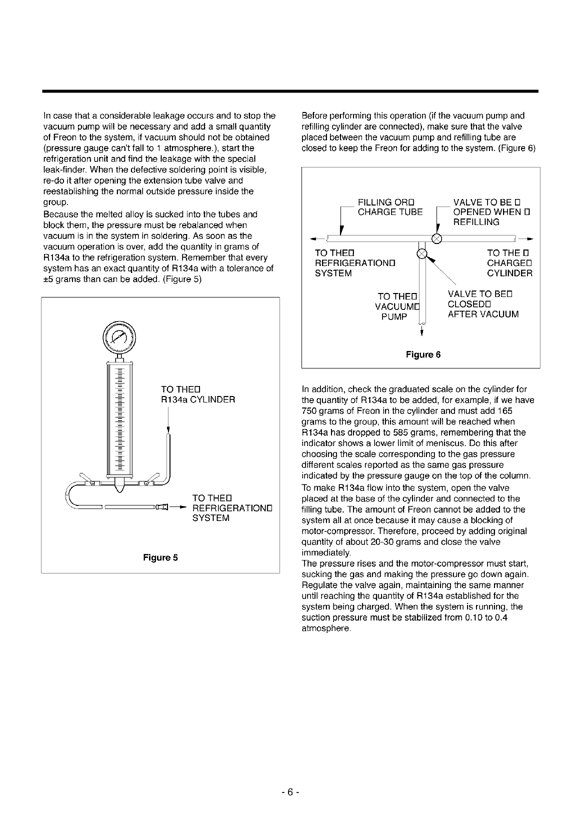 of Freon to the system, if vacuum should not be obtained