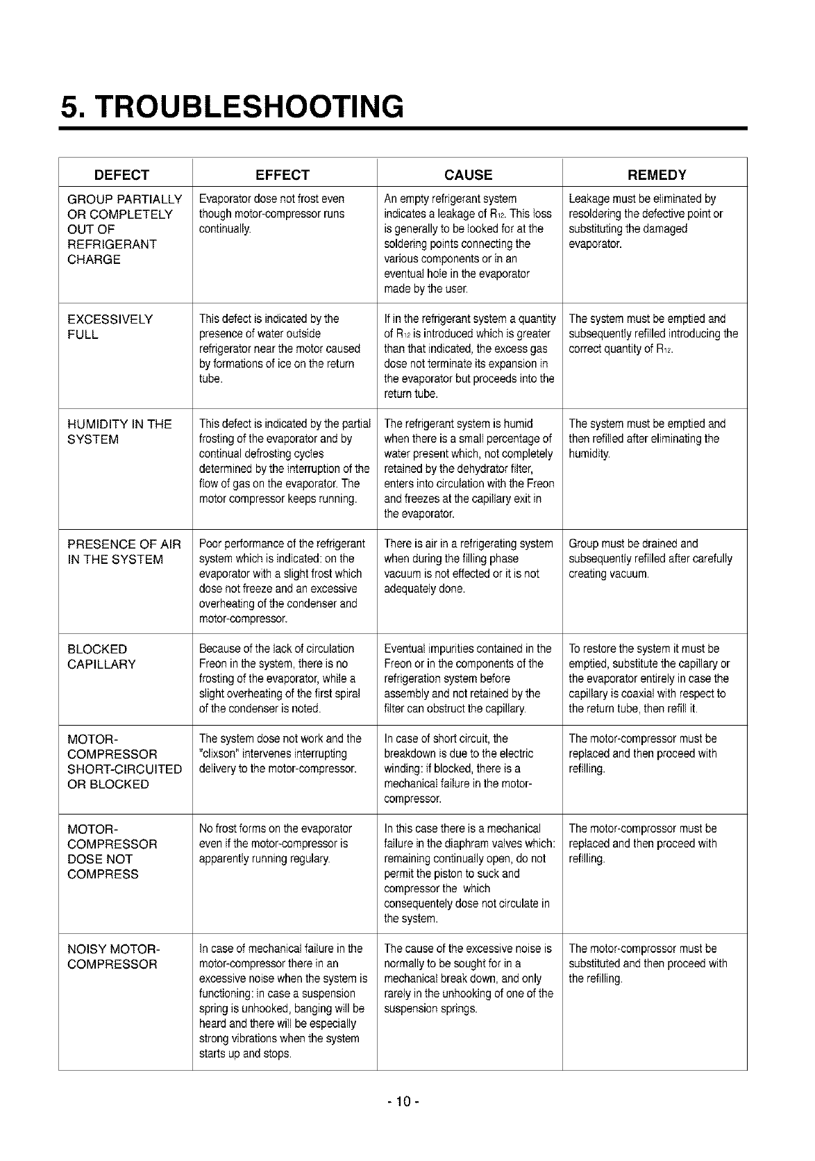 function of the motor-compressor and identify the defects