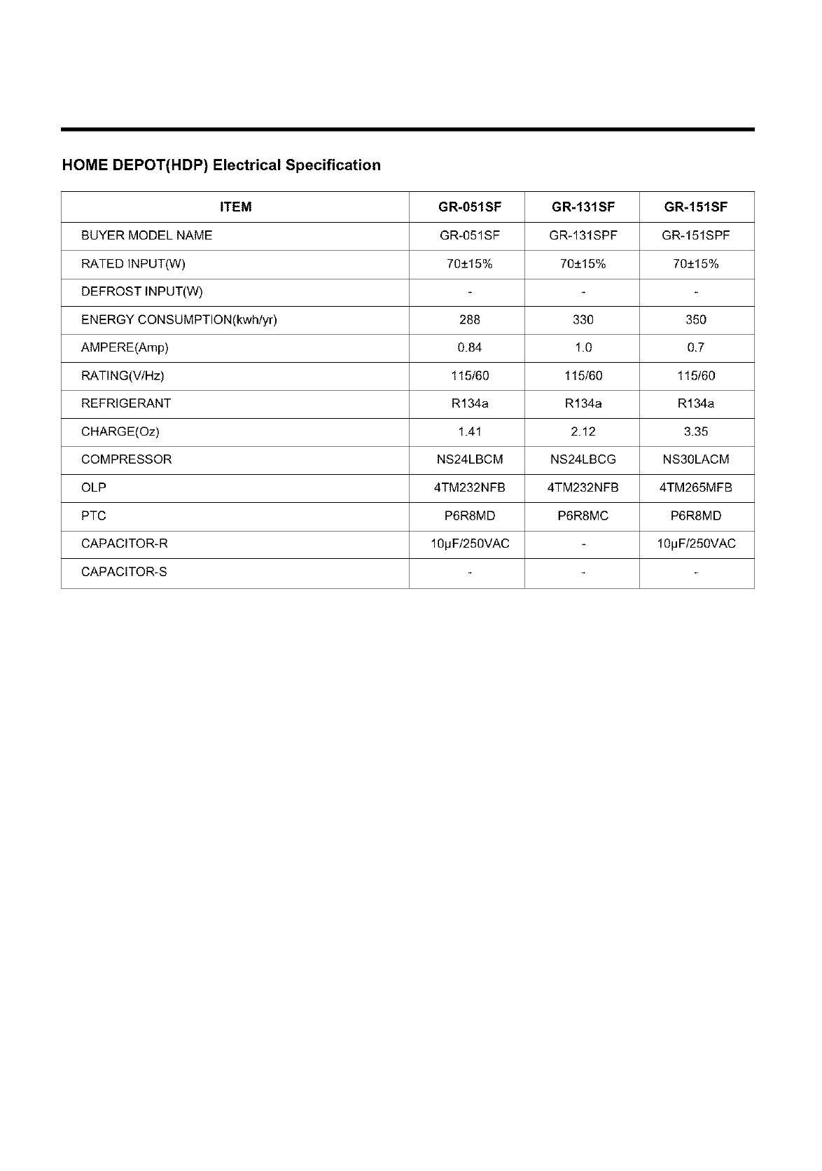 BUYER MODEL NAME GR_051SF GR_131SPF GR-151SPF