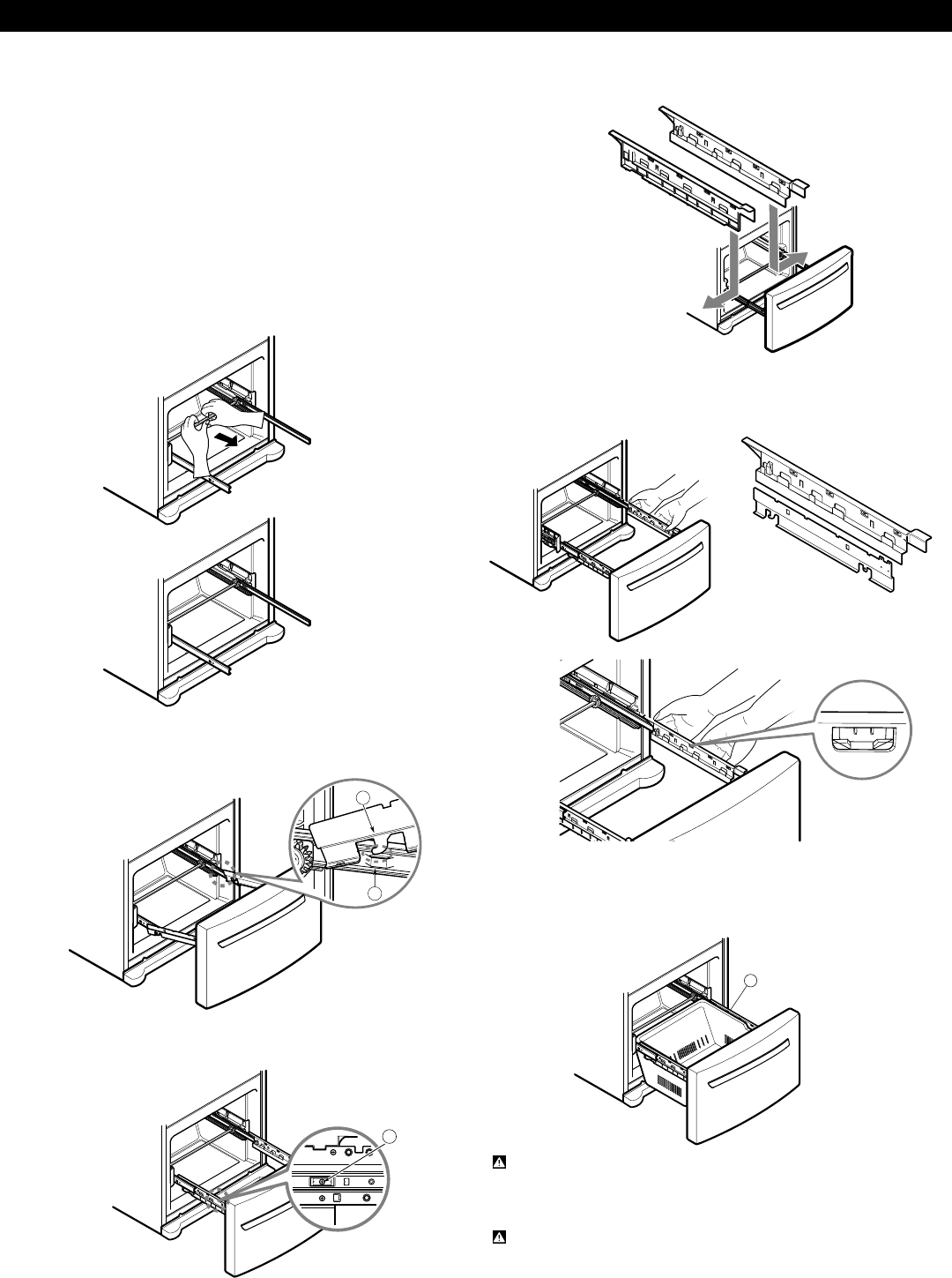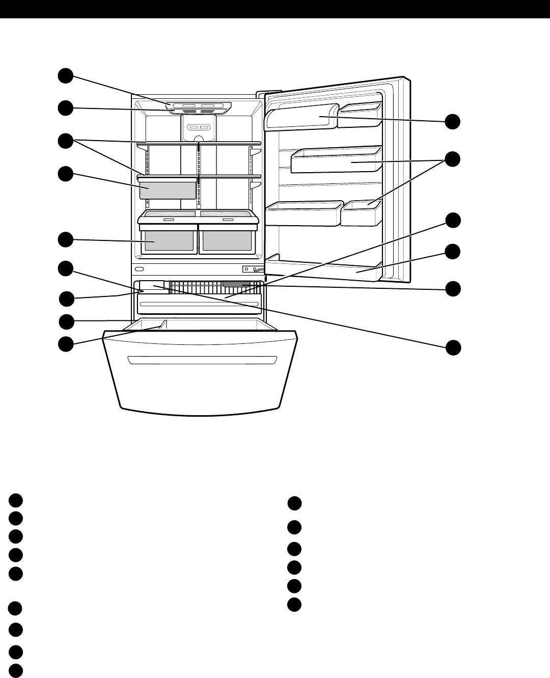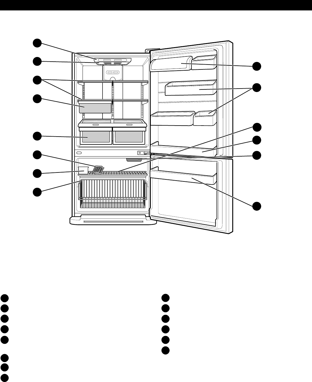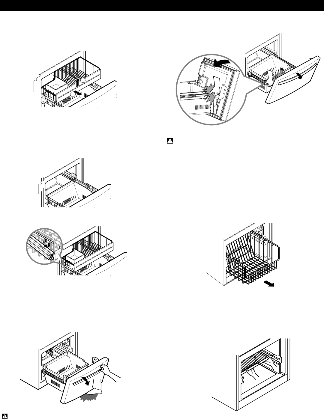 The ice bin, crisper cover, pans, shelves, door bins Push bins all the way in and put crisper cover, pans, shelves