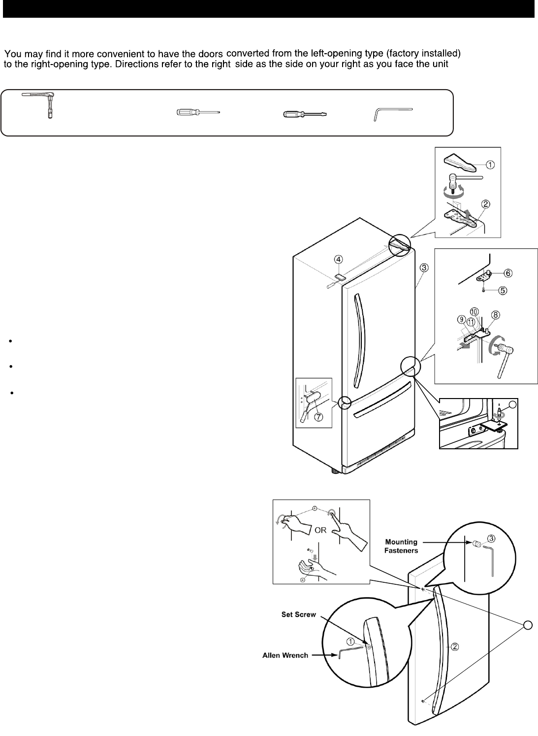 and not properly replaced. Reversing and Replacing Refrigerator Doors section