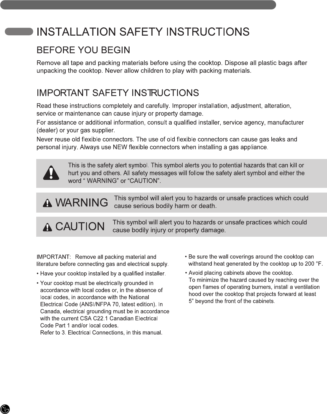 LG LCG3691ST MFL62725503 ¿µ User Manual Cooktop Installation Dimension Guide Gas 30 And 36