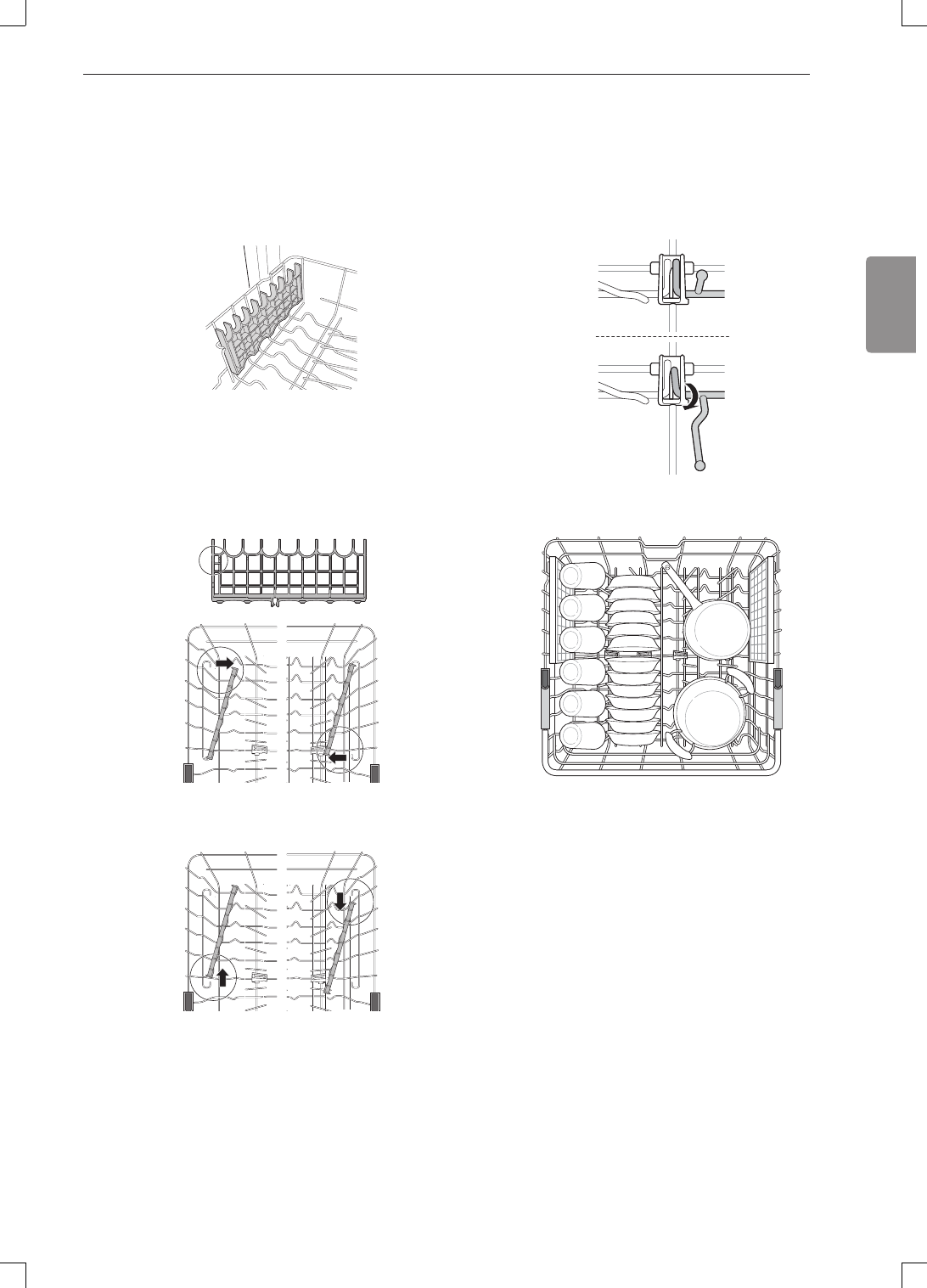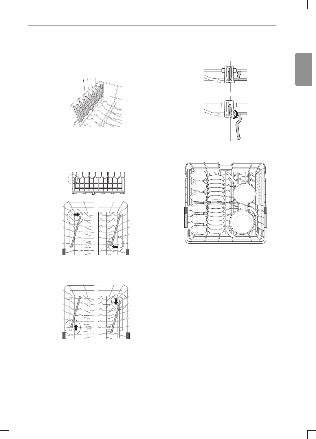 This easy-to-use system of adjustable tines and rack height provides more exibility and versatility when