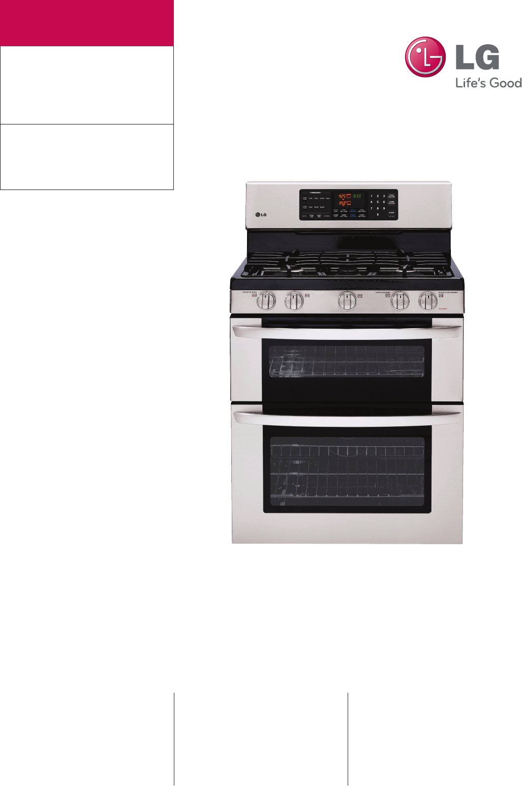 User Manual: LG LDG3016ST Specification Summary of product features, dimensions, and components. (English)