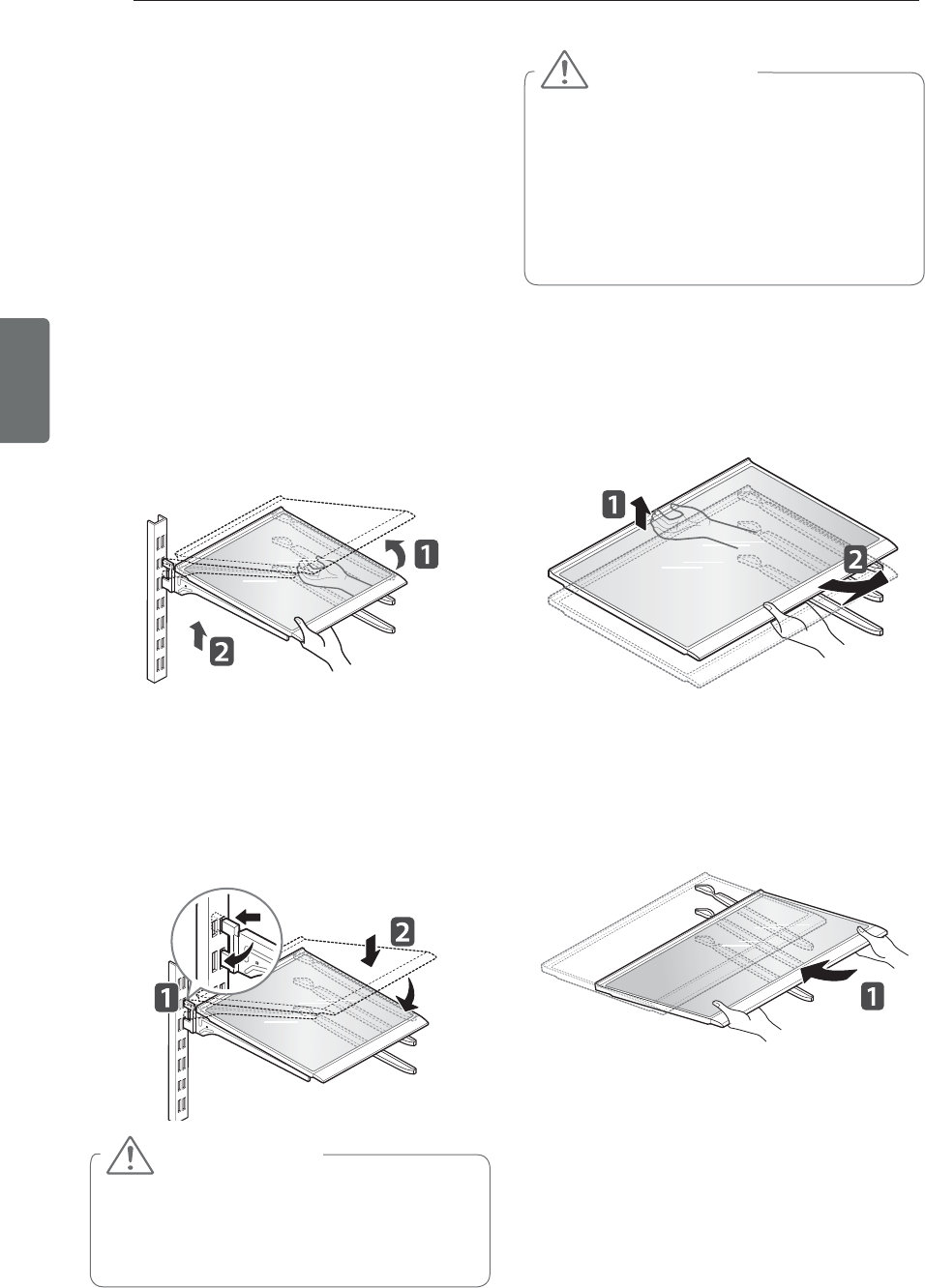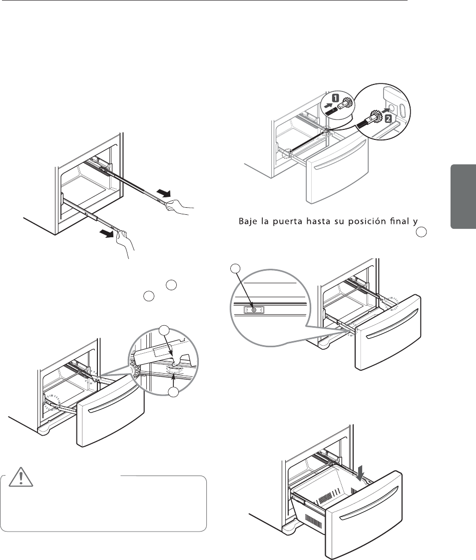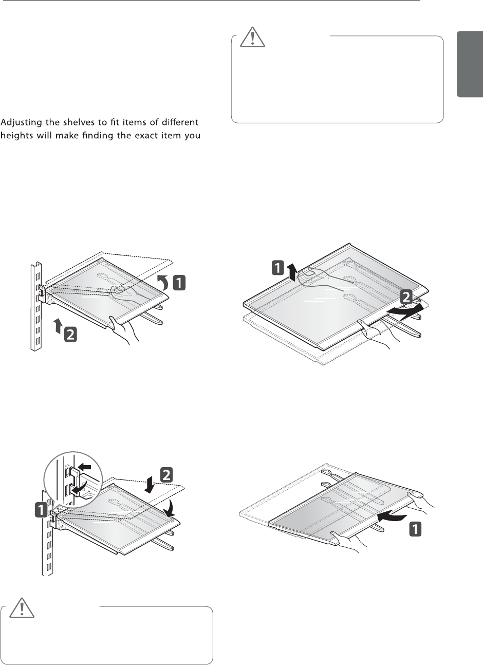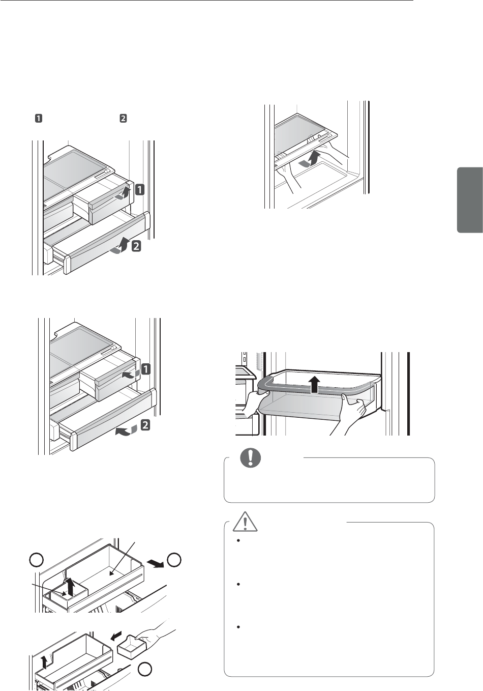 17. Las estanterías, cestas de las puertas, cajones, manillas, y