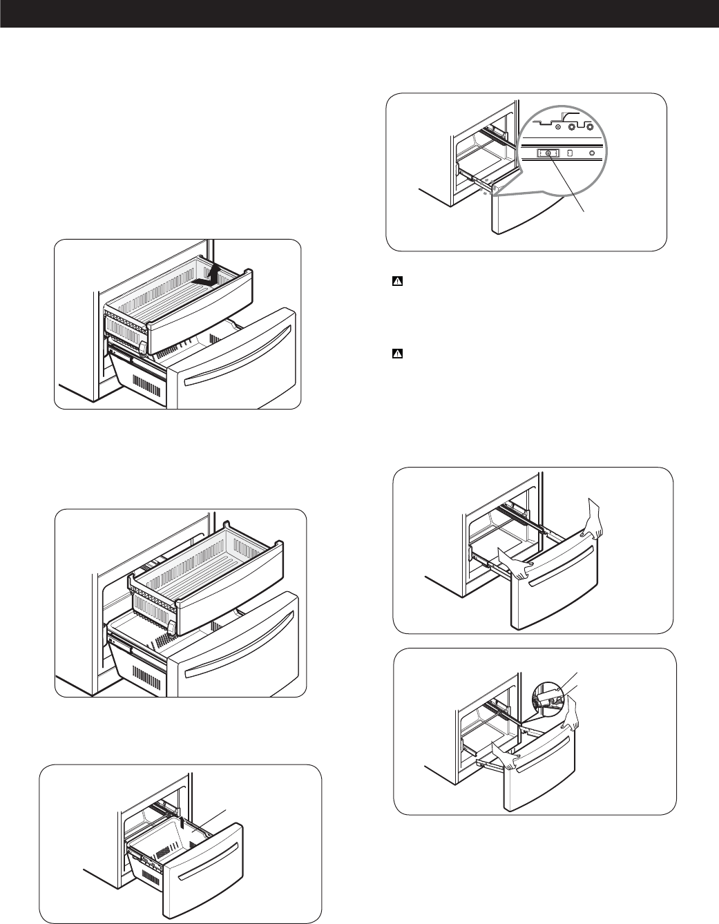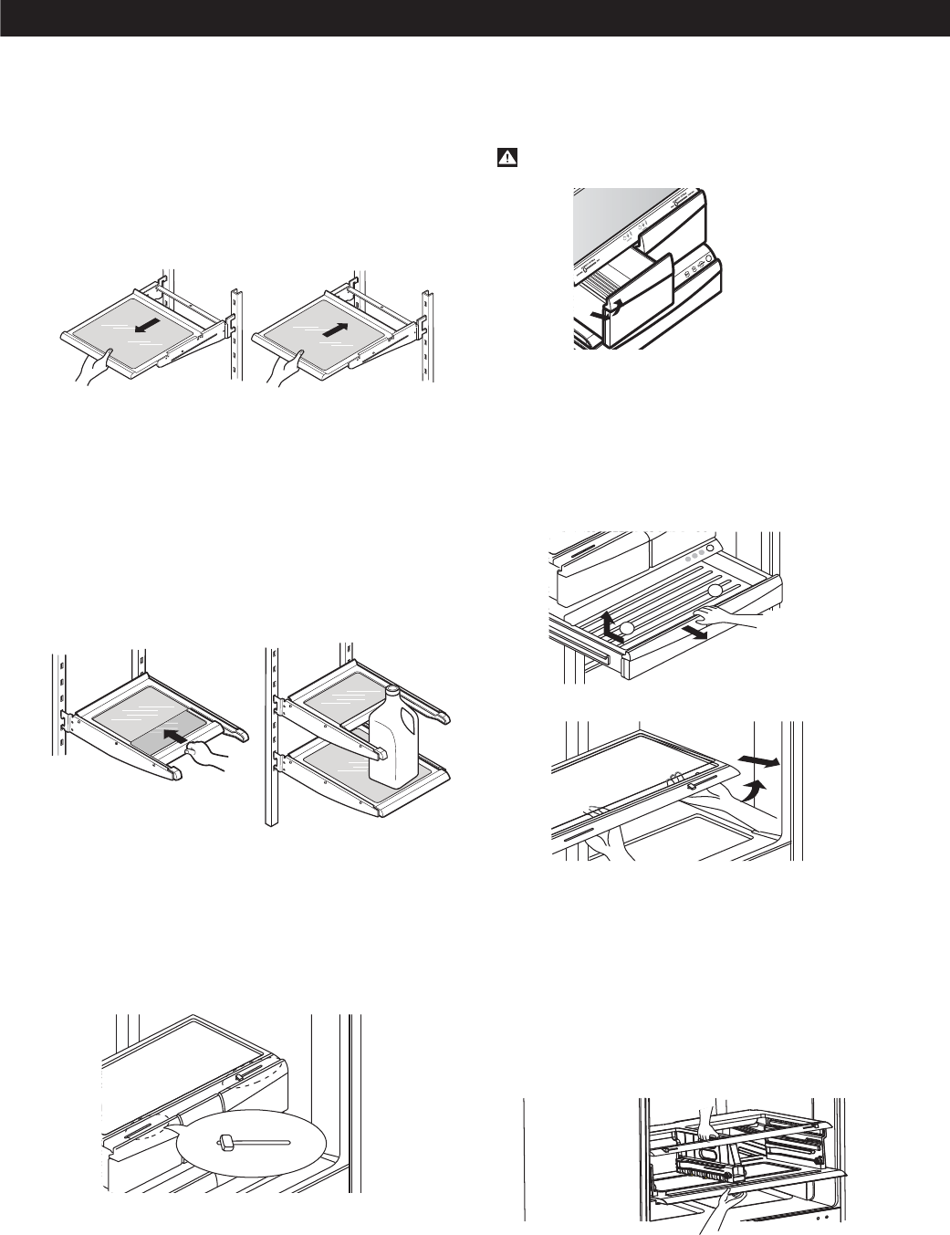17. Las estanterías, cestas de las puertas, cajones, manillas, y