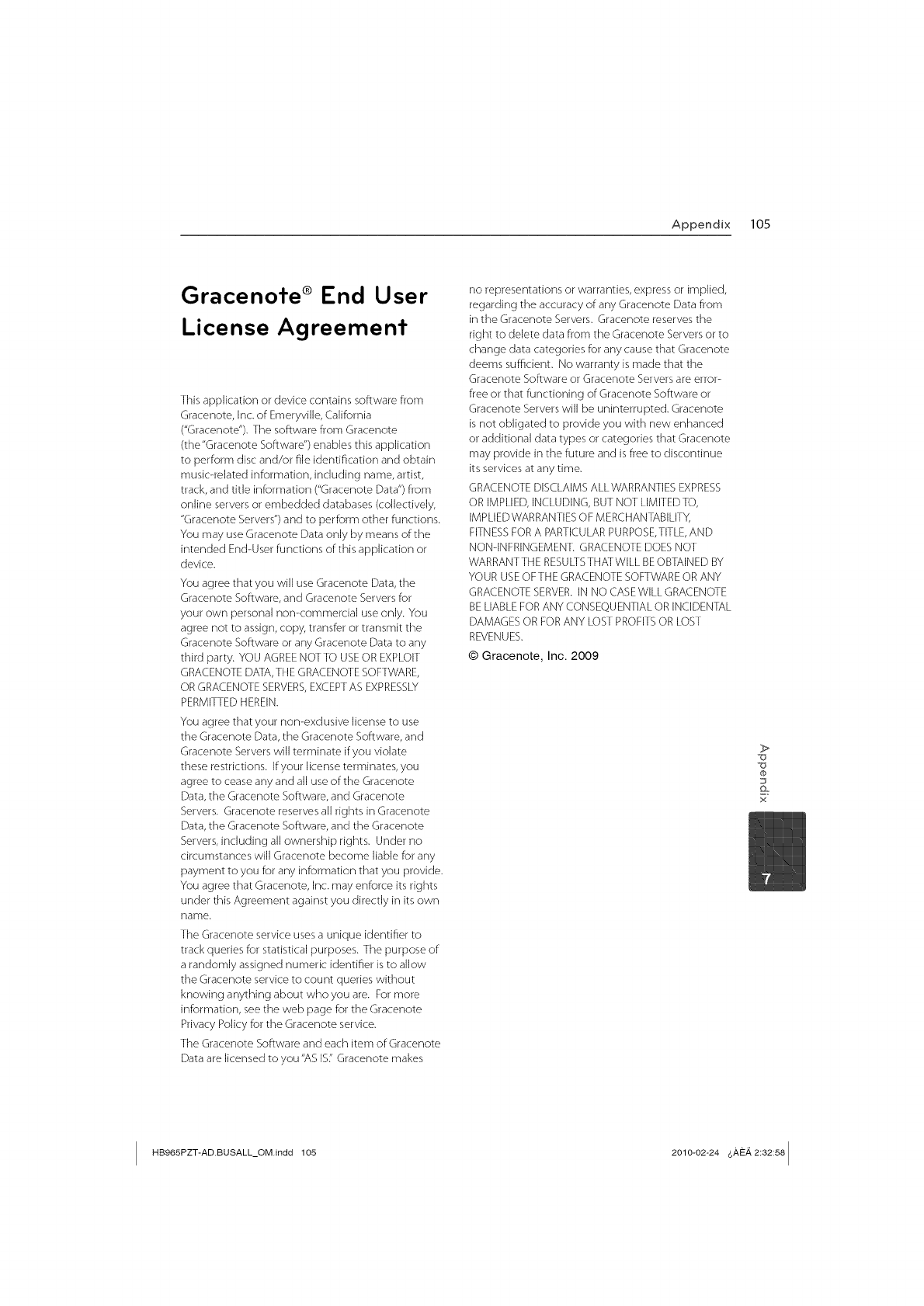 information, see the web page for the Gracenote