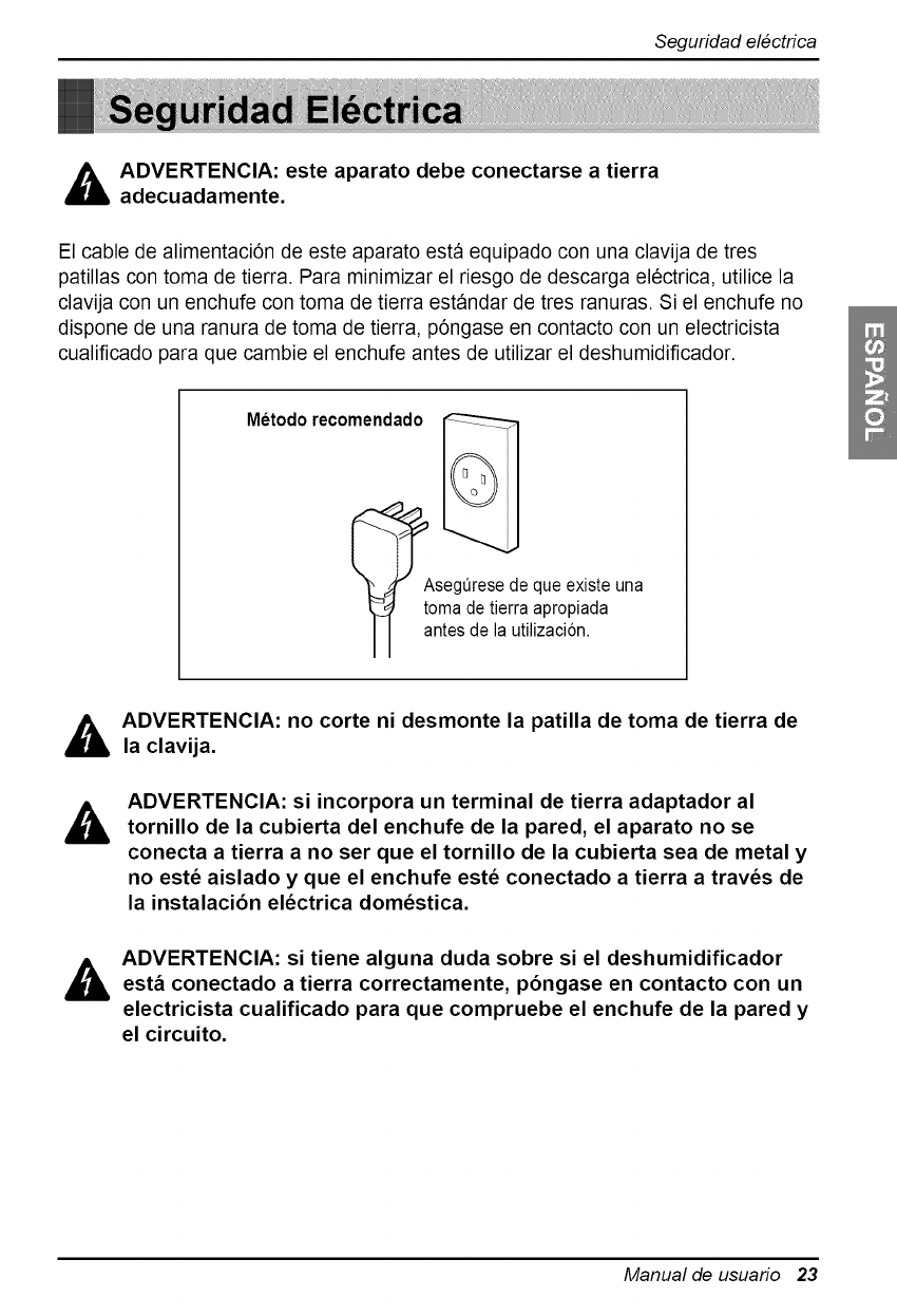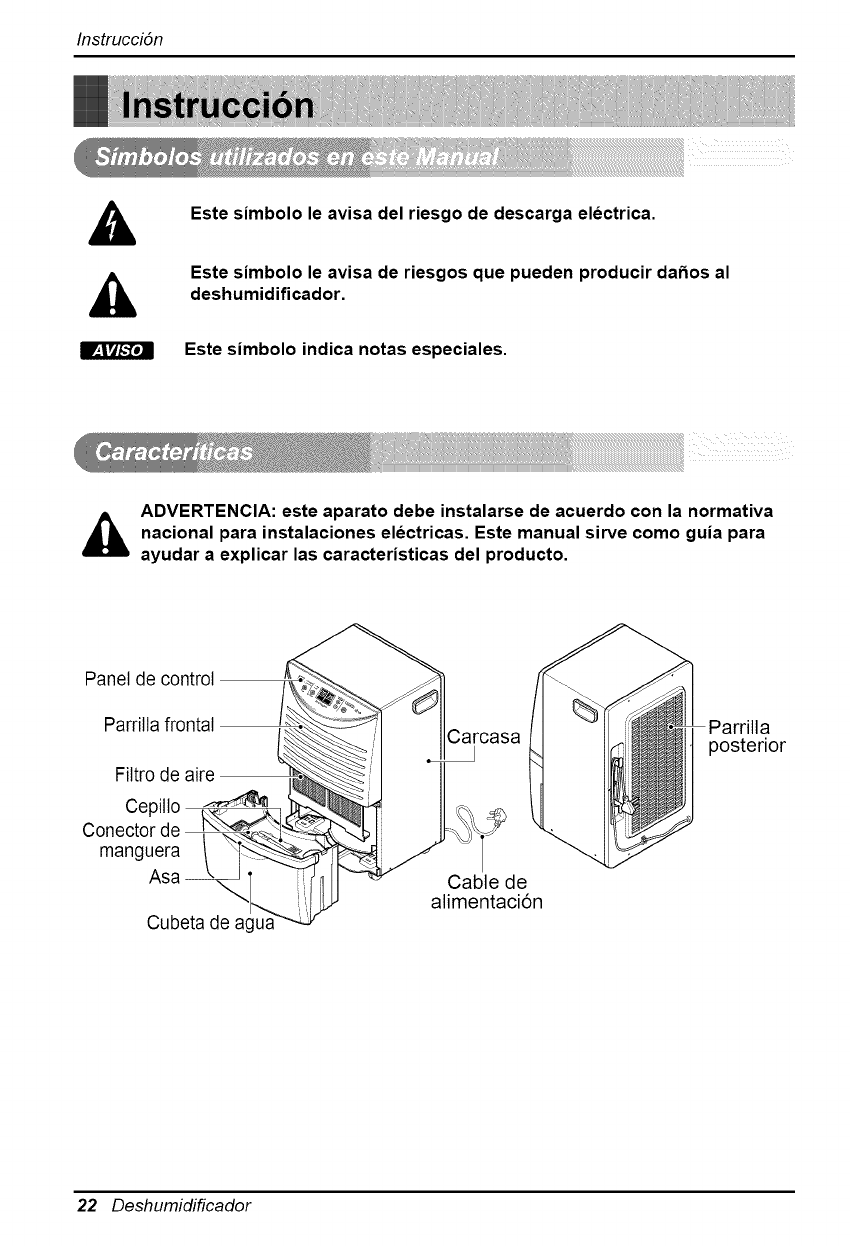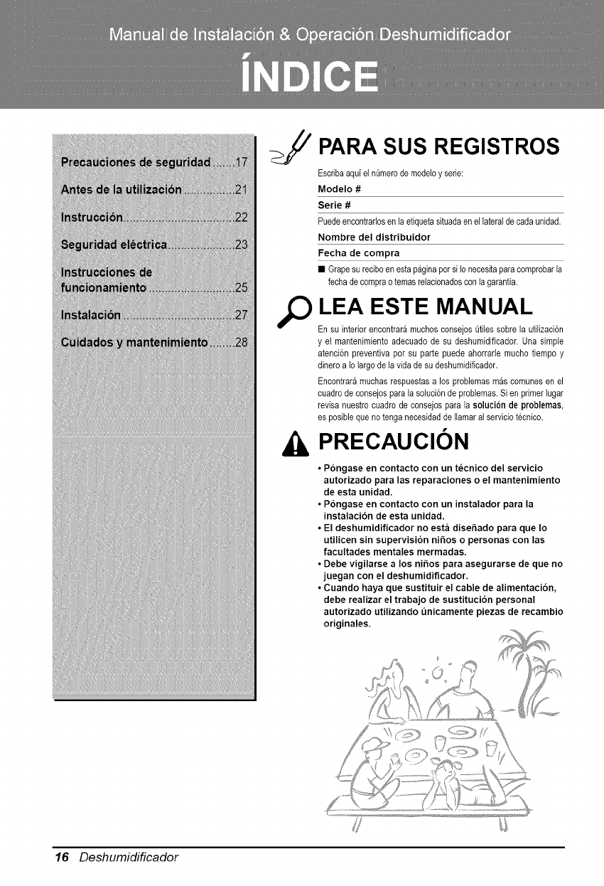 Deshumidificador), nL_mero de modelo, nL_mero de serie, y codigo