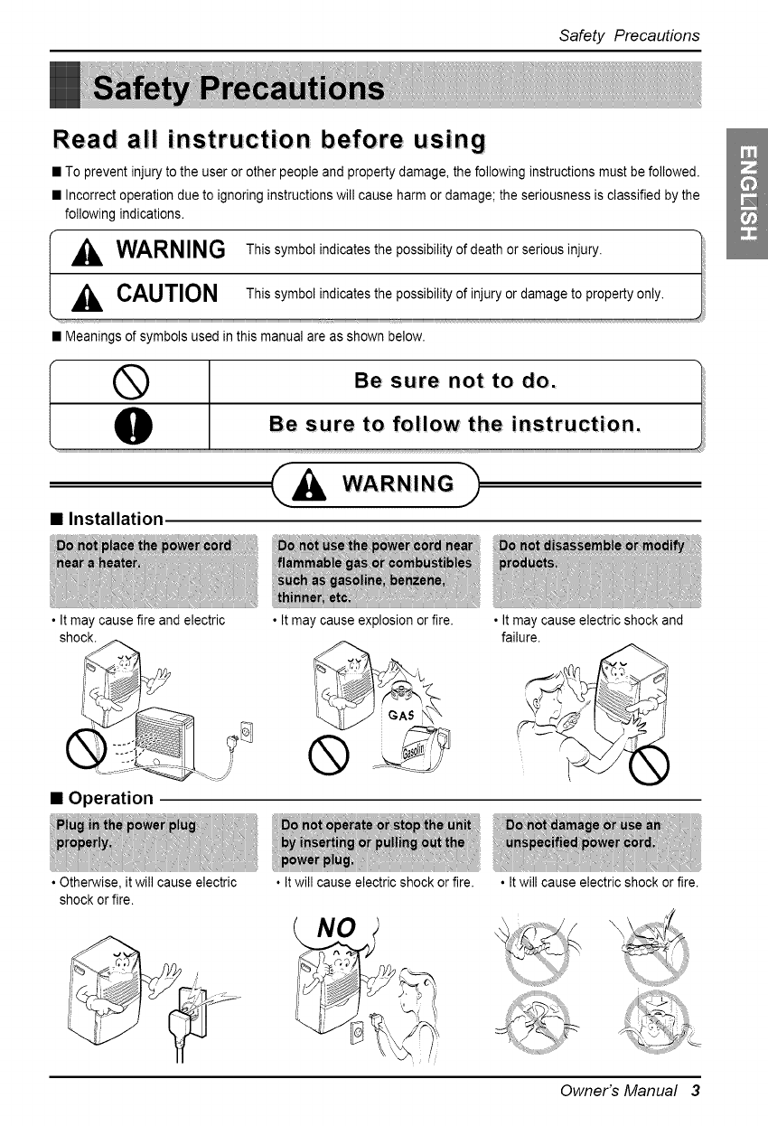 • To prevent injury to the user or other people and property damage, the following instructions must be followed.