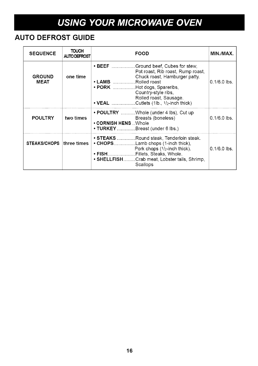 Auto Defrost Guide ........................................................................................................................................... 16-18