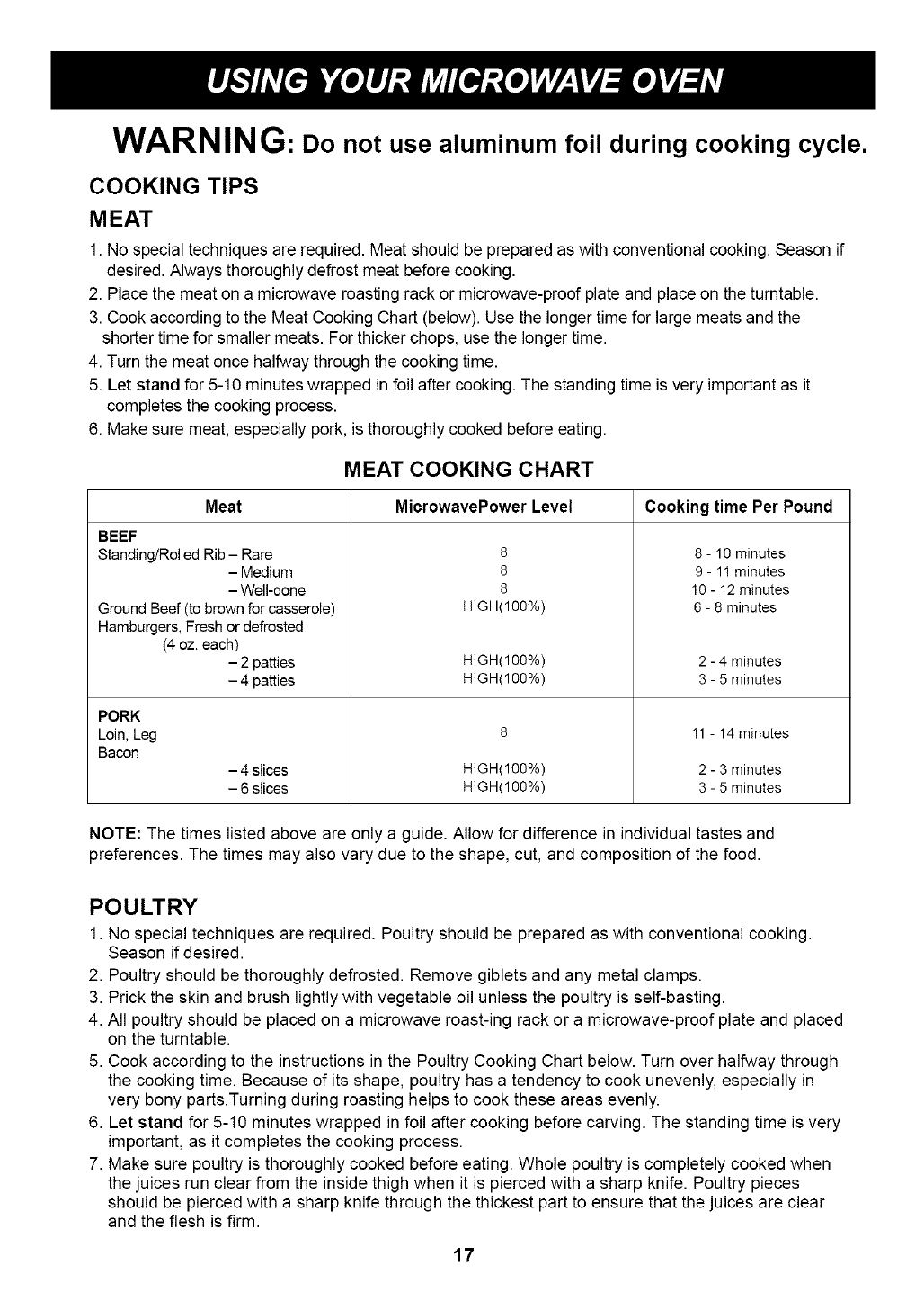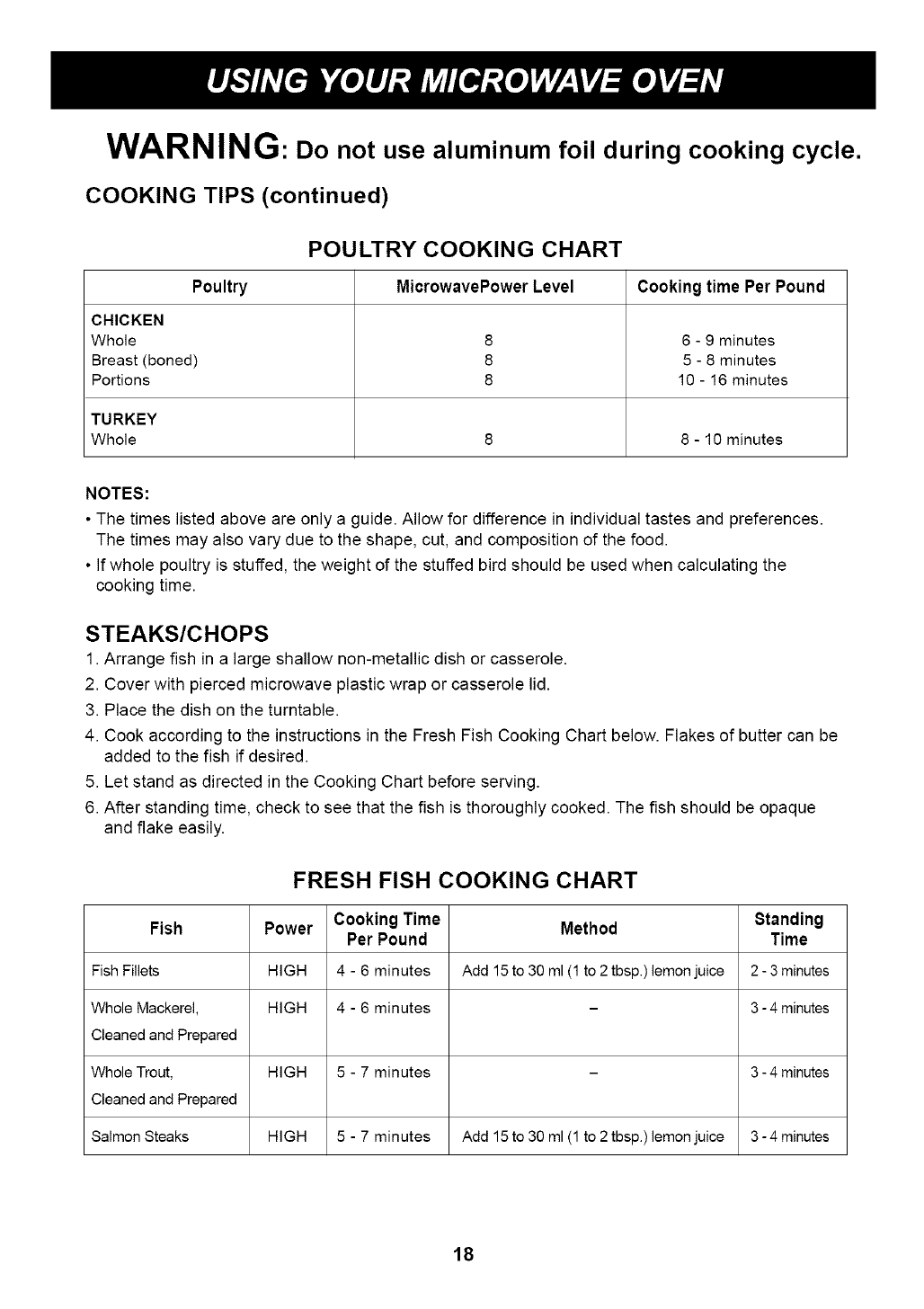 USING YOUR MICROWAVE OVEN ................................................................................................................. 11-18