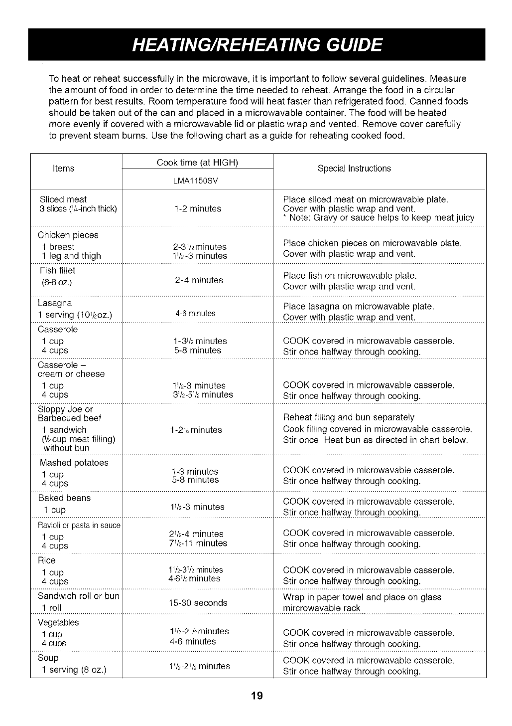 HEATING/REHEATING GUIDE .............................................................................................................................. 19