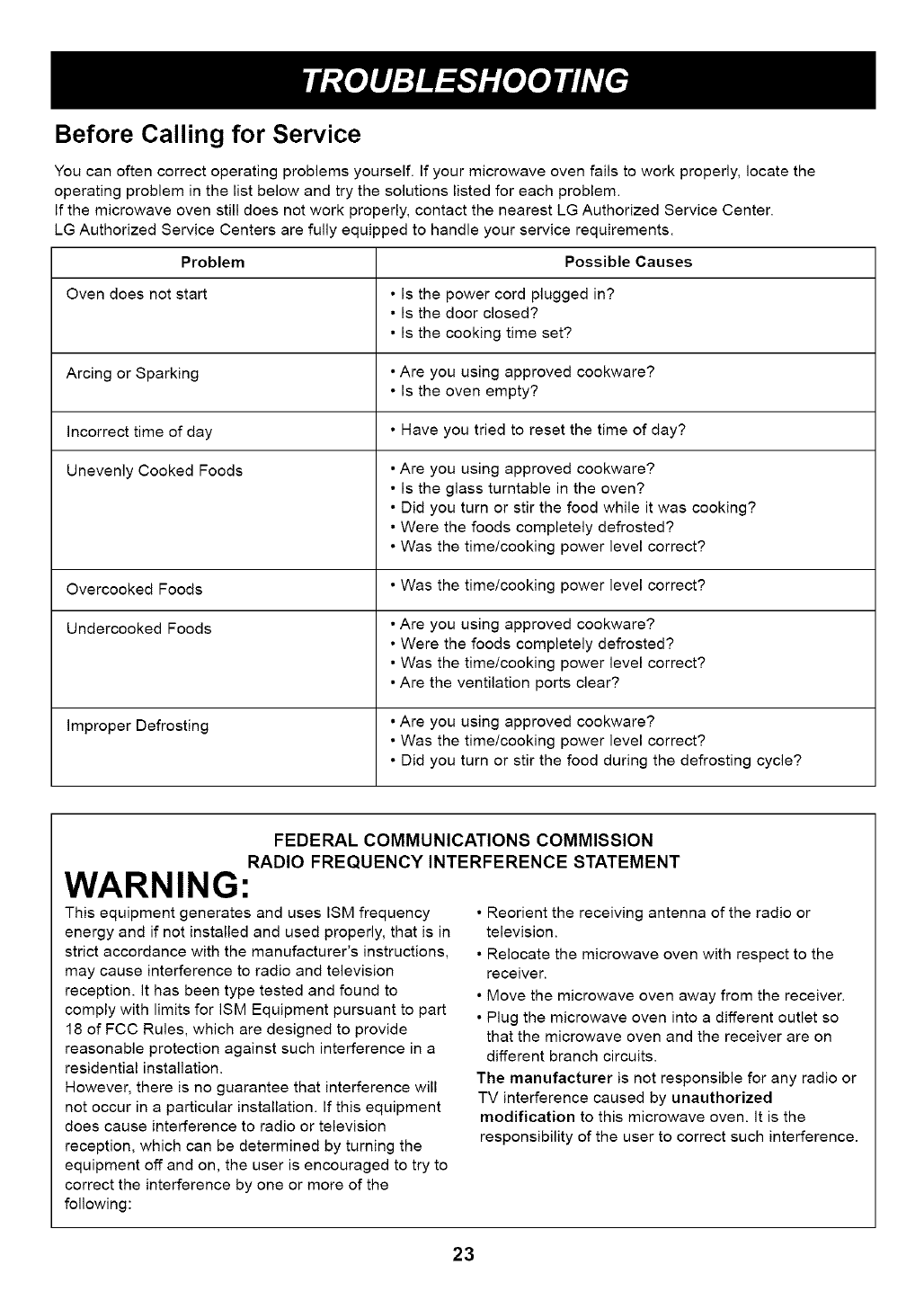 If the microwave oven still does not work properly, contact the nearest LG Authorized Service Center.